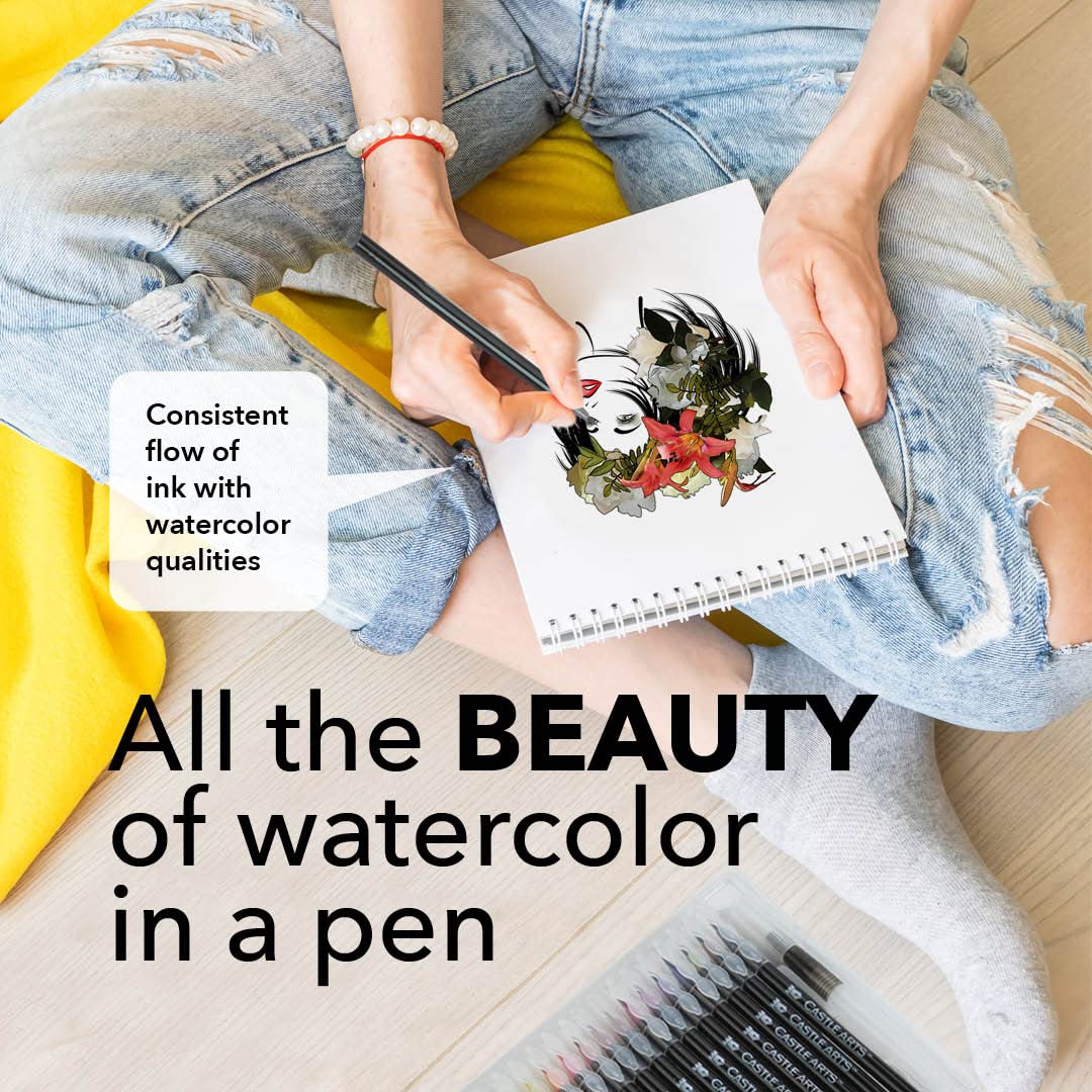 Castle Art suministros para el acuarelas Set de bolígrafos | 24 colores vivos, con consejos de nylon flexibles | Para colorante para adultos, pintura, letras - artistas y principiantes | Caso de viaje con bolígrafo de cepillo de agua extra