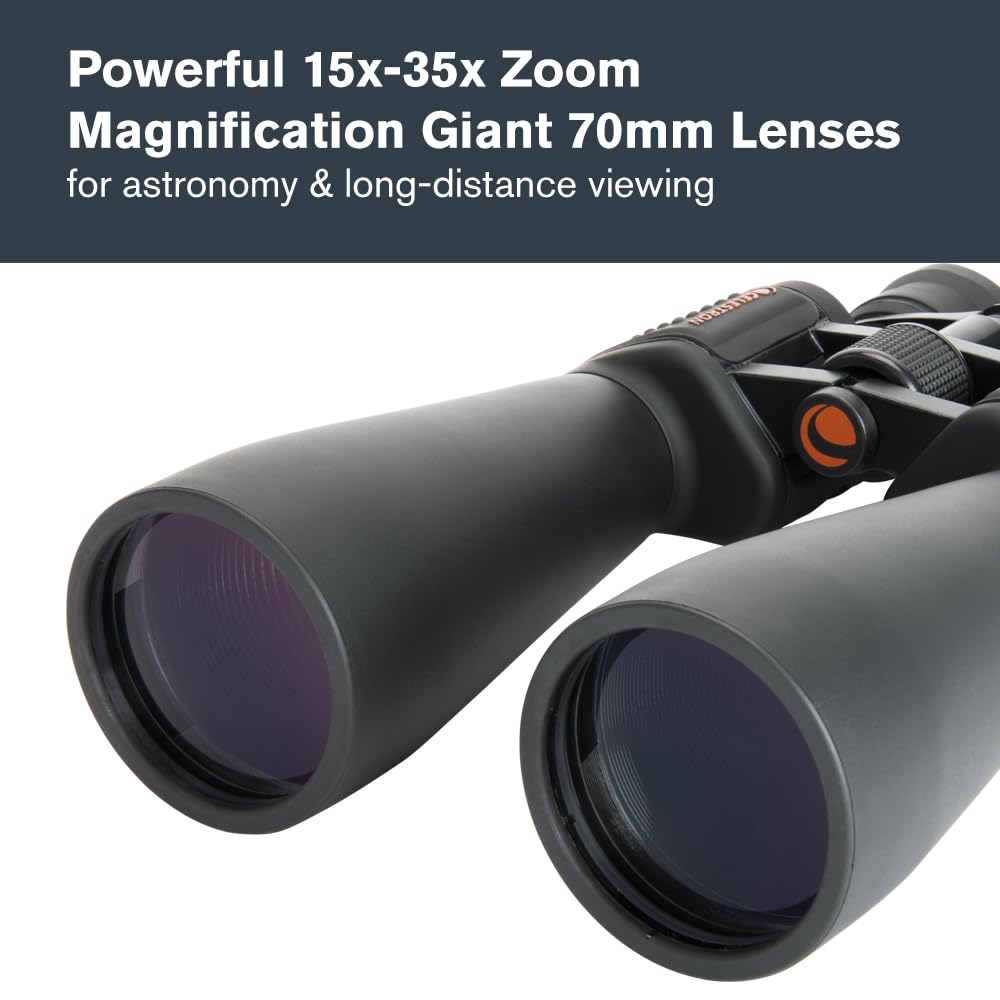-POWERFUL 15-35X ZOOM BINOCULAR: Giant binoculars with massive 70mm objective lenses and powerful adjustable zoom for 15 to 35x magnification. Pair with any tripod for long-distance land-based viewing or astronomy.