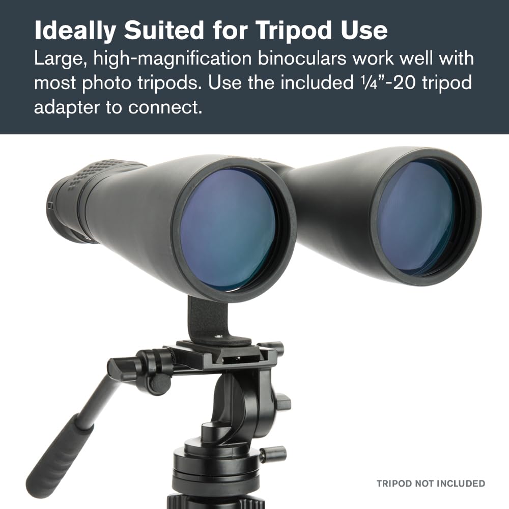-WORKS WITH YOUR TRIPOD: Due to their size & weight, most users mount SkyMaster binoculars on a traditional photo tripod (not included). The included ¼”-20 adapter attaches to most tripods in seconds.