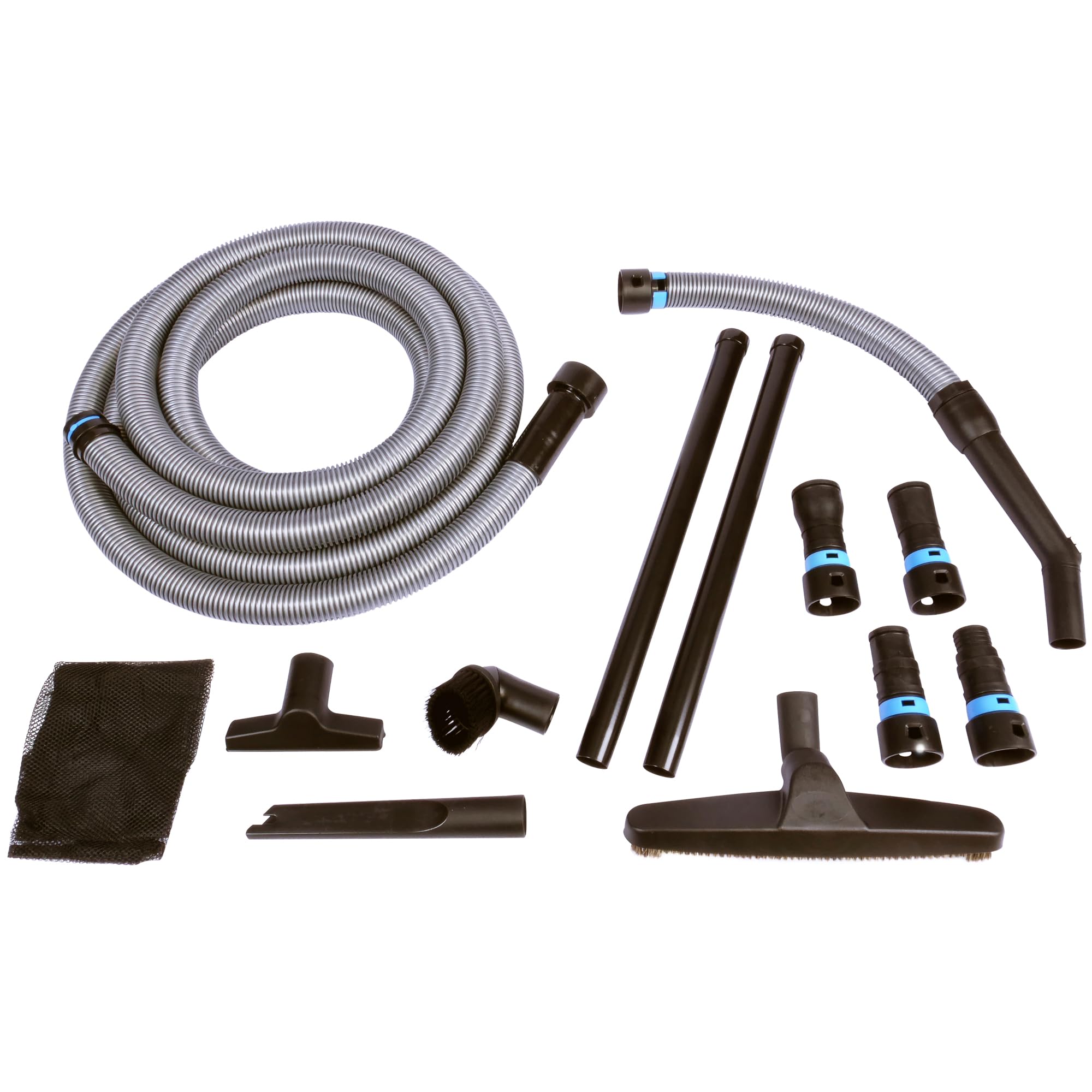 Cen-Tec Systems’ hose with multi-brand power adapter set is engineered to connect a wide range of major power tool brands to your home shop vacuum for recovery of the debris and dust generated during the use of the power tool, keeping you and your shop clean while protecting you from airborne particulate that can harm your health. The adapters are designed to be versatile with most unique and tool industry typical connections. The inner collar with durable acetal clip connects directly to most brands of dry wall sanders and other tools generating high volumes of dust or having large debris profiles. A bayonet fitting with 1" soft TPE molded fitting is perfect for small power tool connections. The smooth 360 degree swivel rotation of the bayonet prevents the hose from kinking or resisting free movement of the power tool. Cen-Tec's hose is designed to fit all major brands of power tools and work shrouds including Skill Bosch, Ryobi, Makita, Dewalt, Festool. Fein, Cobalt, Porter Cable, Hitachi and Milwaukee Electric. The tank end is designed to fit all major brands of home shop vacuums including Shop Vac, Vacmaster, Ridgid, Craftsman, Dewalt, John Deere, as well as many private brands typical of the 2 ½" vacuum connection.