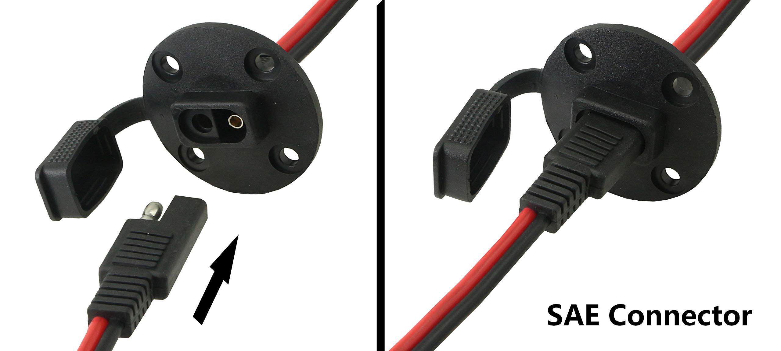 -Quick connect and disconnect. The sae connector with connector cap protects the sae connector from rain and dust, and the inside of the sae connector remains clean and dry when not in use.