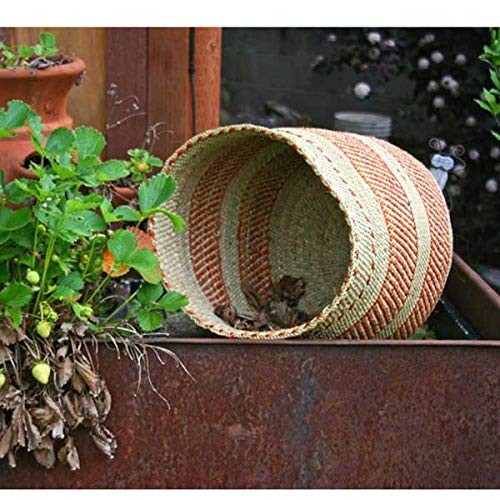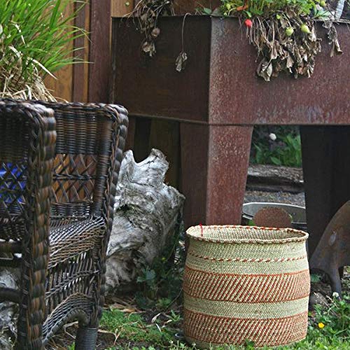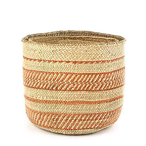 Cesta de suelo africana tejida a mano - Natural con rayas de color óxido