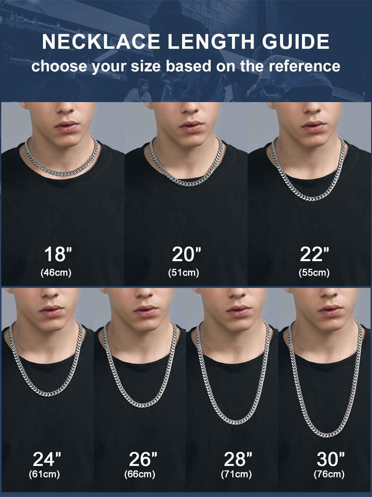 -Precise Sizing: Available in 4.8mm/6mm/10mm/14mm widths with 14-30 inch lengths. Pro Tip: Women prefer 14-20 inch (14 inch ideal for women's choker styles), while 22-24 inch fits most men's necks comfortably, so choosing a larger size for wearing will be more comfortable.Actual measurements may vary slightly due to measurement errors - refer to sizing chart.