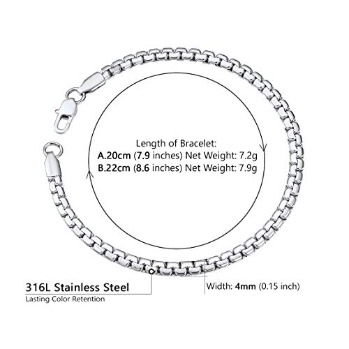 ChainsPro, pulsera de cadena de caja redonda veneciana con cierre de langosta, 4mm, 20CM, caja de regalo de joyería elegante para hombres y mujeres ChainsPro, pulsera de cadena de caja redonda veneciana con cierre de langosta, 4mm, 20CM, caja de regalo de joyería elegante para hombres y mujeres