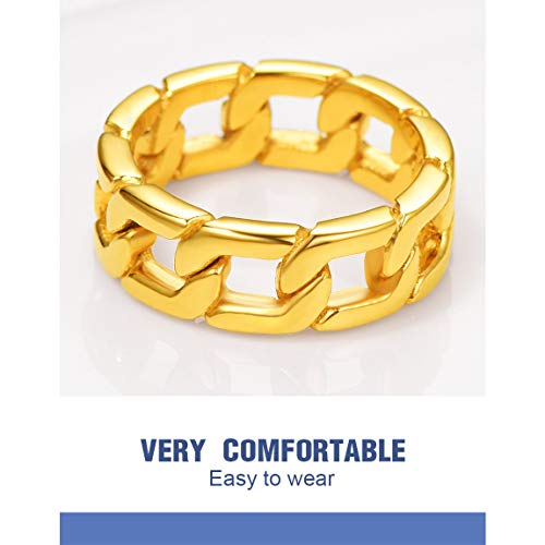 ChainsPro Sturdy Cuban Link / Spinner Rings para hombres / mujeres, puede grabar, tamaño 06-12, tono dorado de 18 quilates / acero inoxidable 316L / negro (enviar caja de regalo)