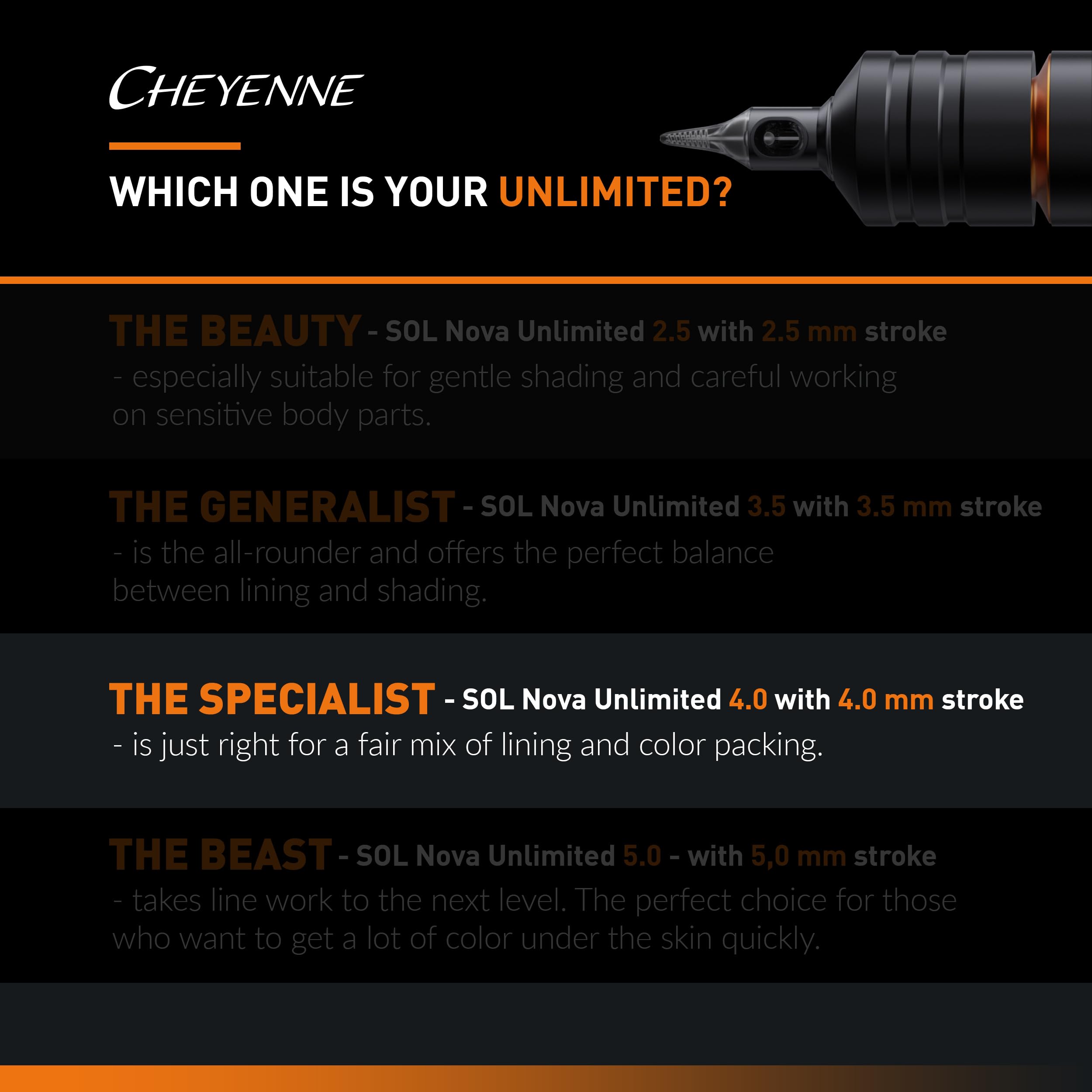-LIMITLESS CREATIVITY – Unleash your artistic vision with the Cheyenne Sol Nova Unlimited tattoo machine pen, versatile as a standard liner and shader.