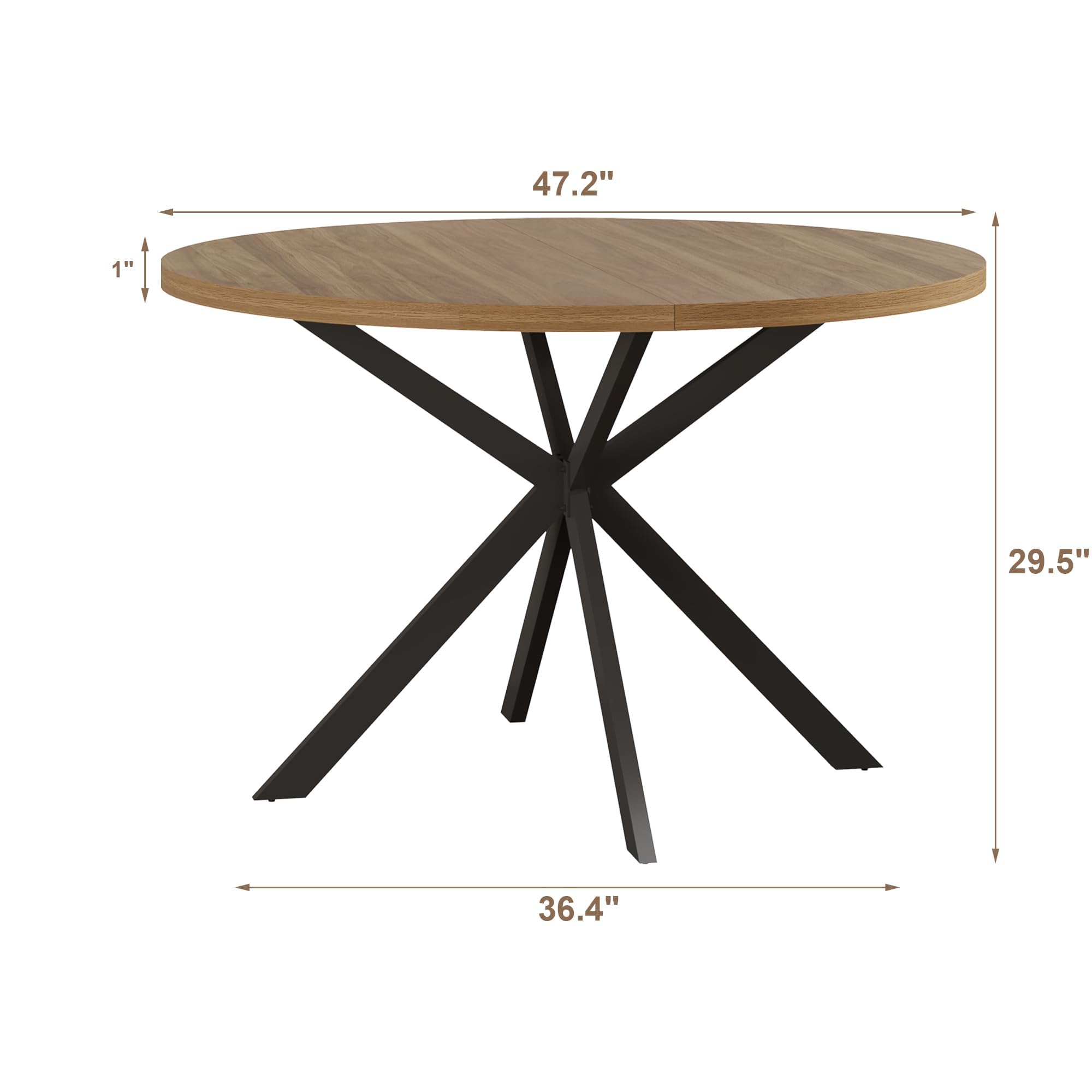 -【Stable Base】The round dining table uses four cross-carbon steel legs and is equipped with non-slip rubber foot pads to protect the floor while providing stability and not easy to shake