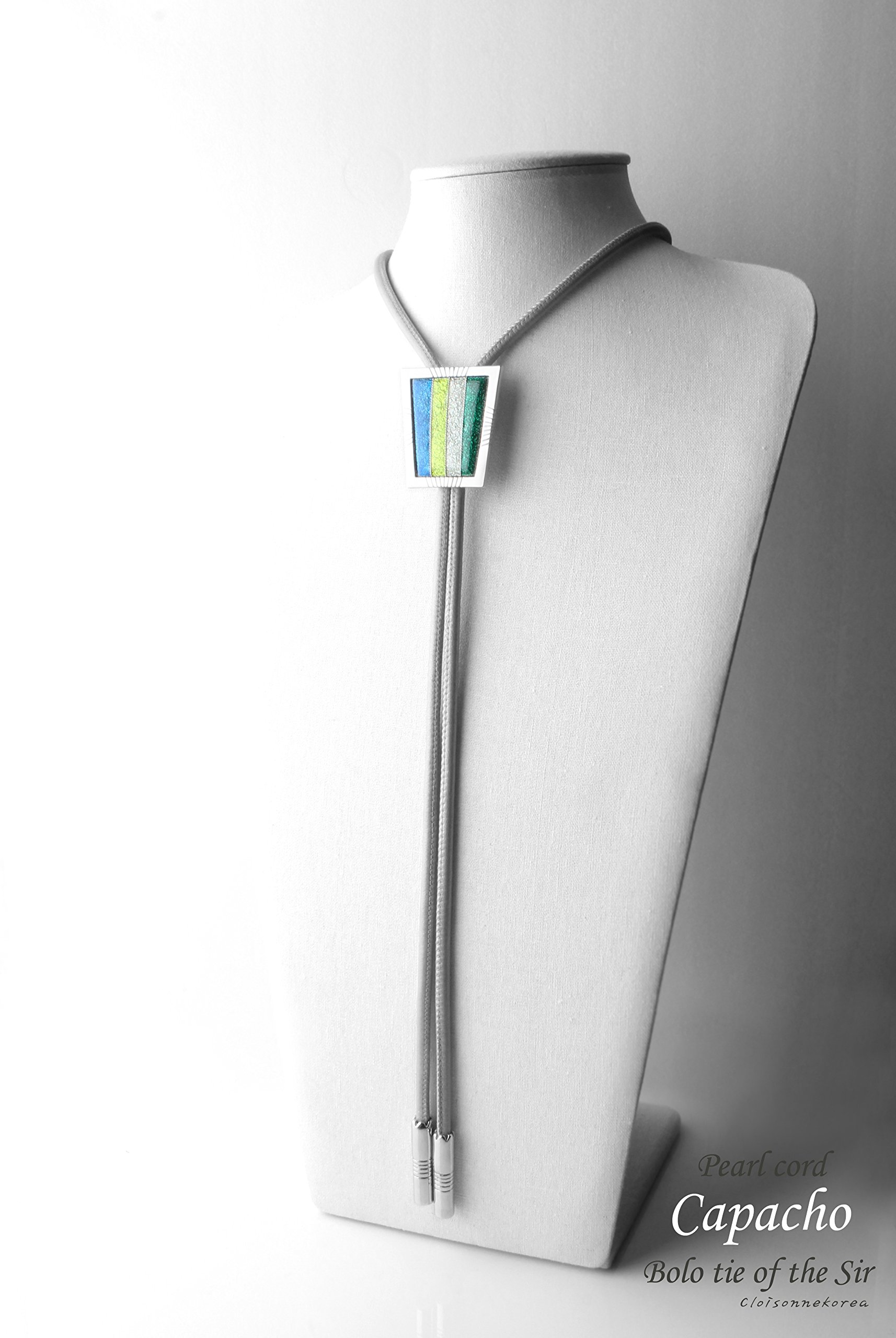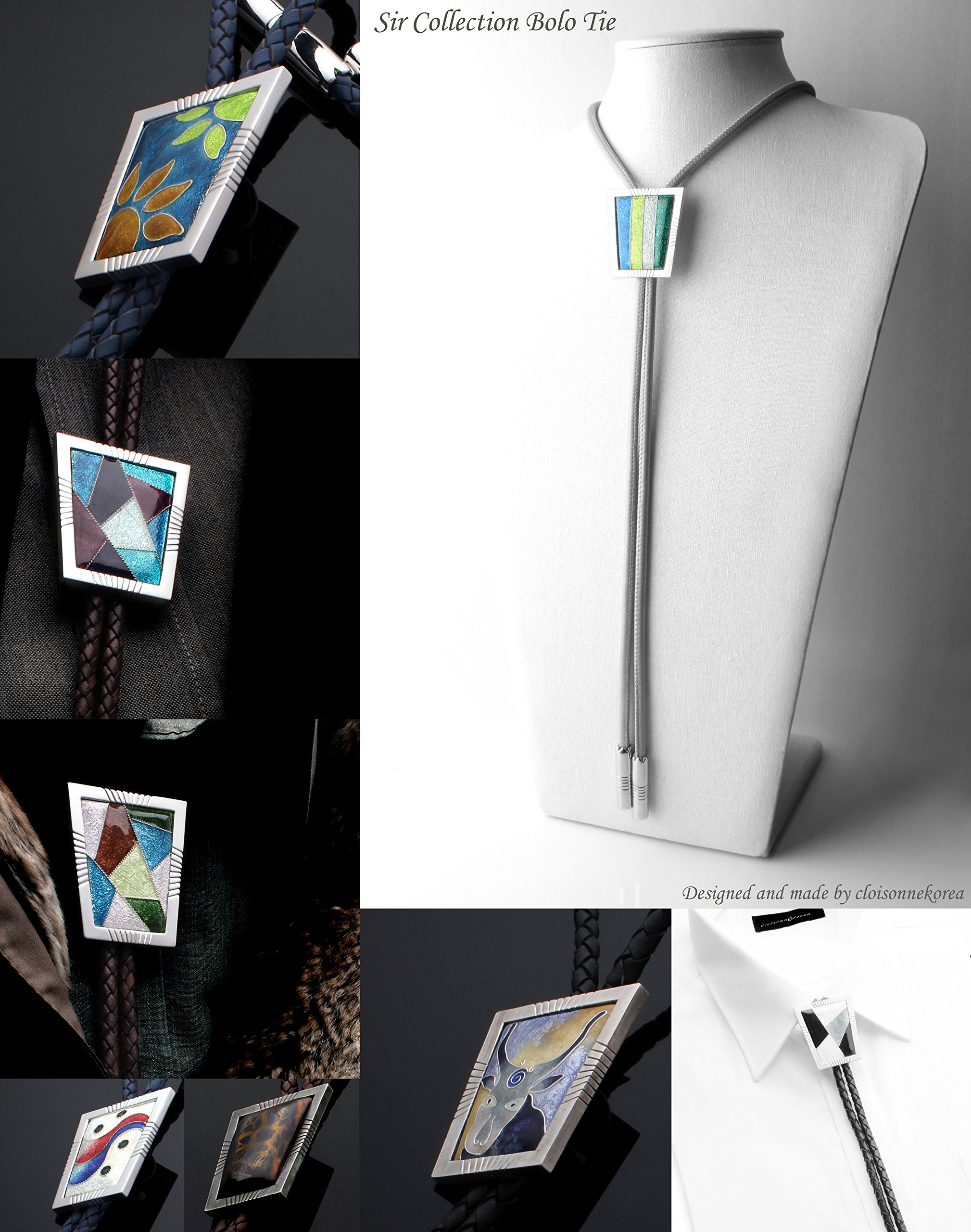Handmade Cloisonne&Leather Bolo tie. Cloisonne is an ancient technique for decorating metalwork objects, in recent centuries using vitreous enamel. The resulting objects can also be called cloisonne or cloisonné. Cloisonné enamel objects are worked on with enamel powder made into a paste, which then needs to be fired in a kiln. Cloisonnekorea focus on the natural beauty of cloisonne through handcraft skill and various color.