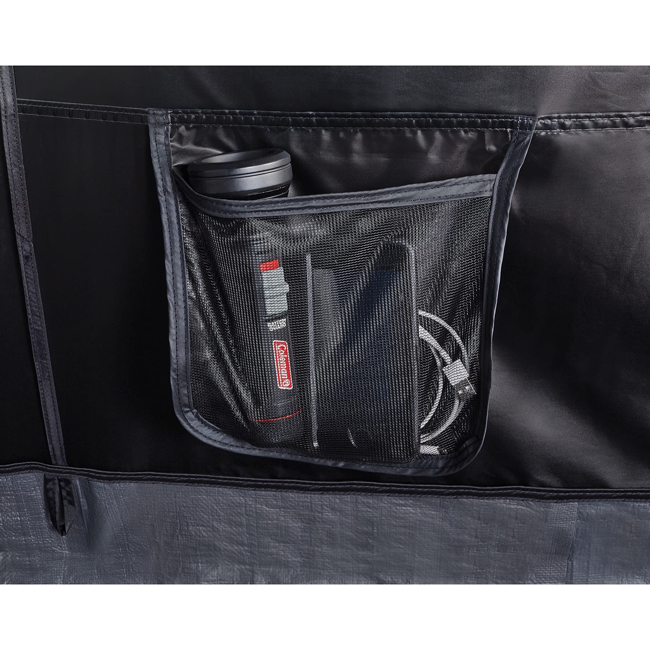 Turn your camping into glamping with the Coleman Camping Tent. Equipped with Dark Room Technology, it reduces inside heat, providing a comfortable rest at any time of day. This WeatherTec system's tent is perfect for backyard family gatherings, festivals, or trips to the beach. Its welded corners and inverted seams keep water at bay. With an included rainfly for extra weather protection, reflective guy lines for greater visibility at night, and an E-Port for easy electrical power access, this tent has everything you need. The room divider provides added privacy, and the quick setup can be completed in as fast as 1 minute.