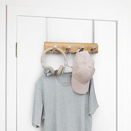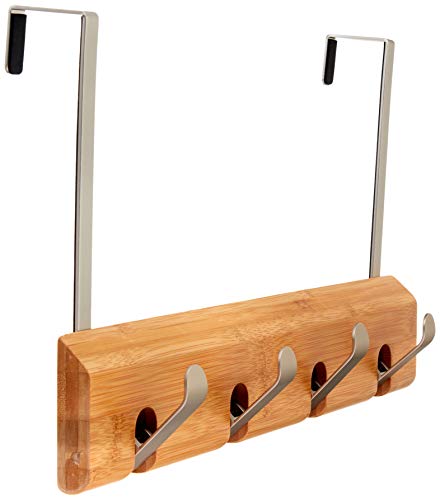 - Over-the-door hanging storage rack hooks over the top of any standard door