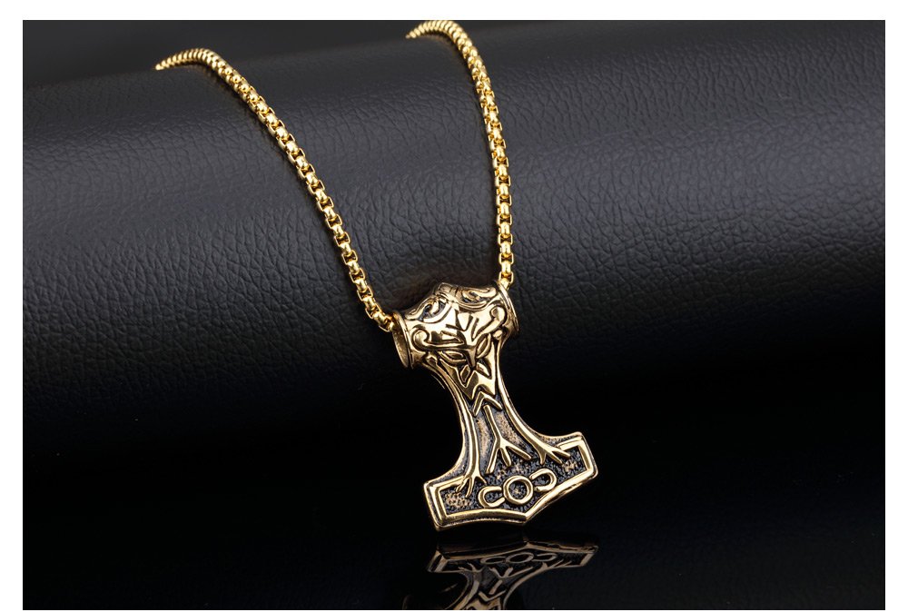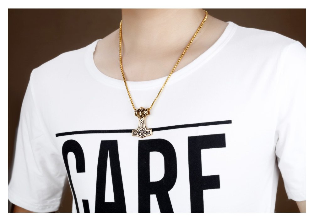 PAURO Collar con colgante de martillo Thors Mjolnir de acero inoxidable para hombre, joyería vikinga de oro con cadena