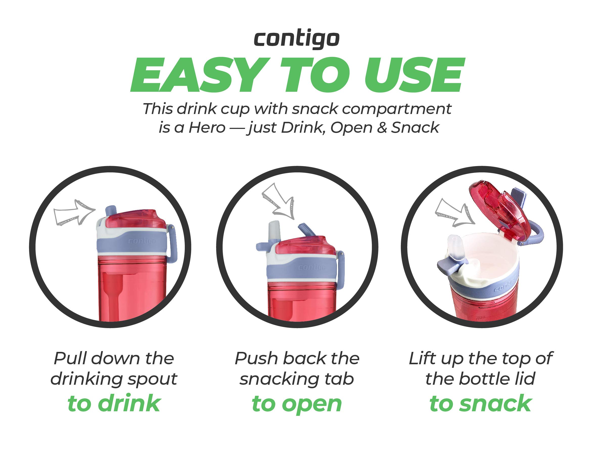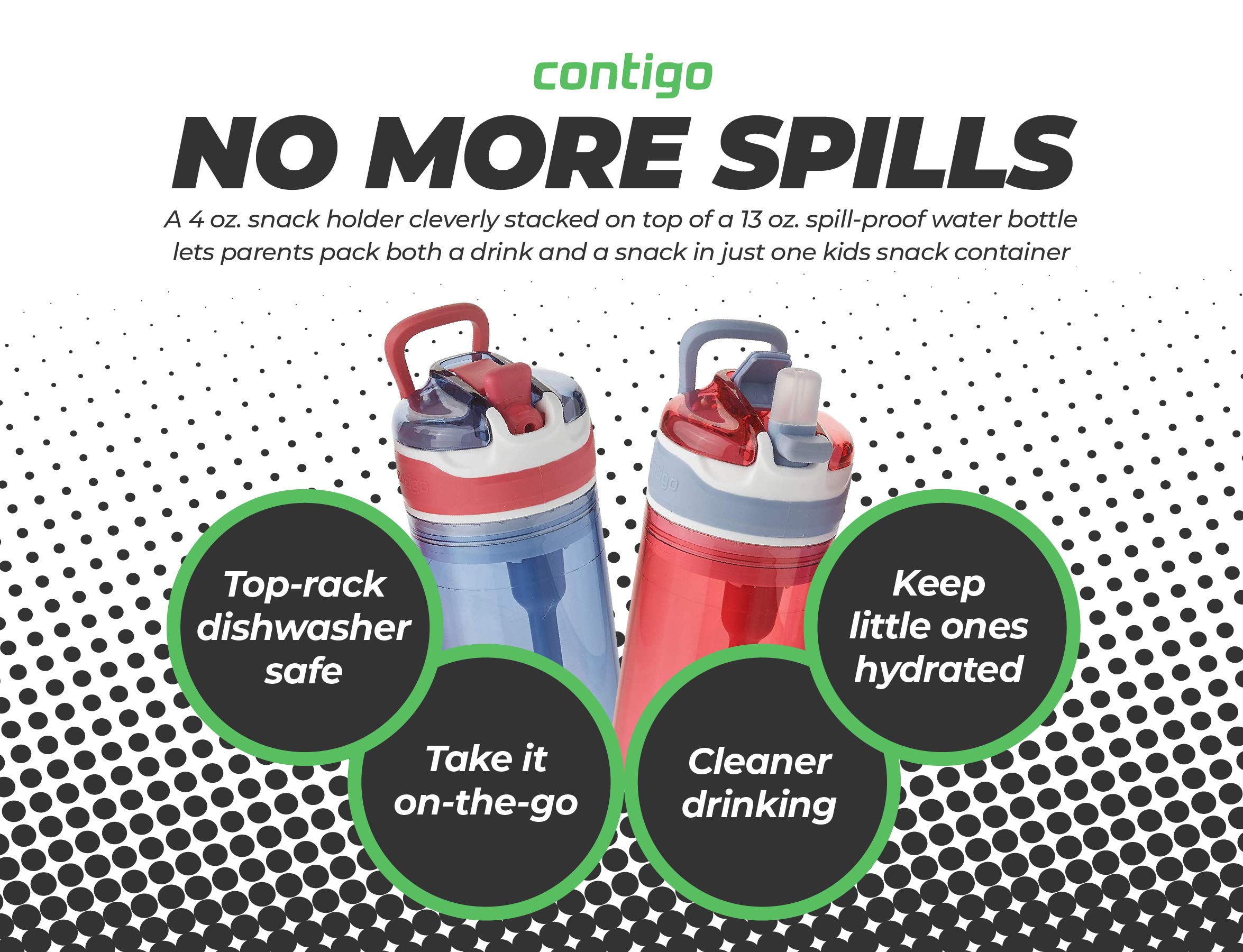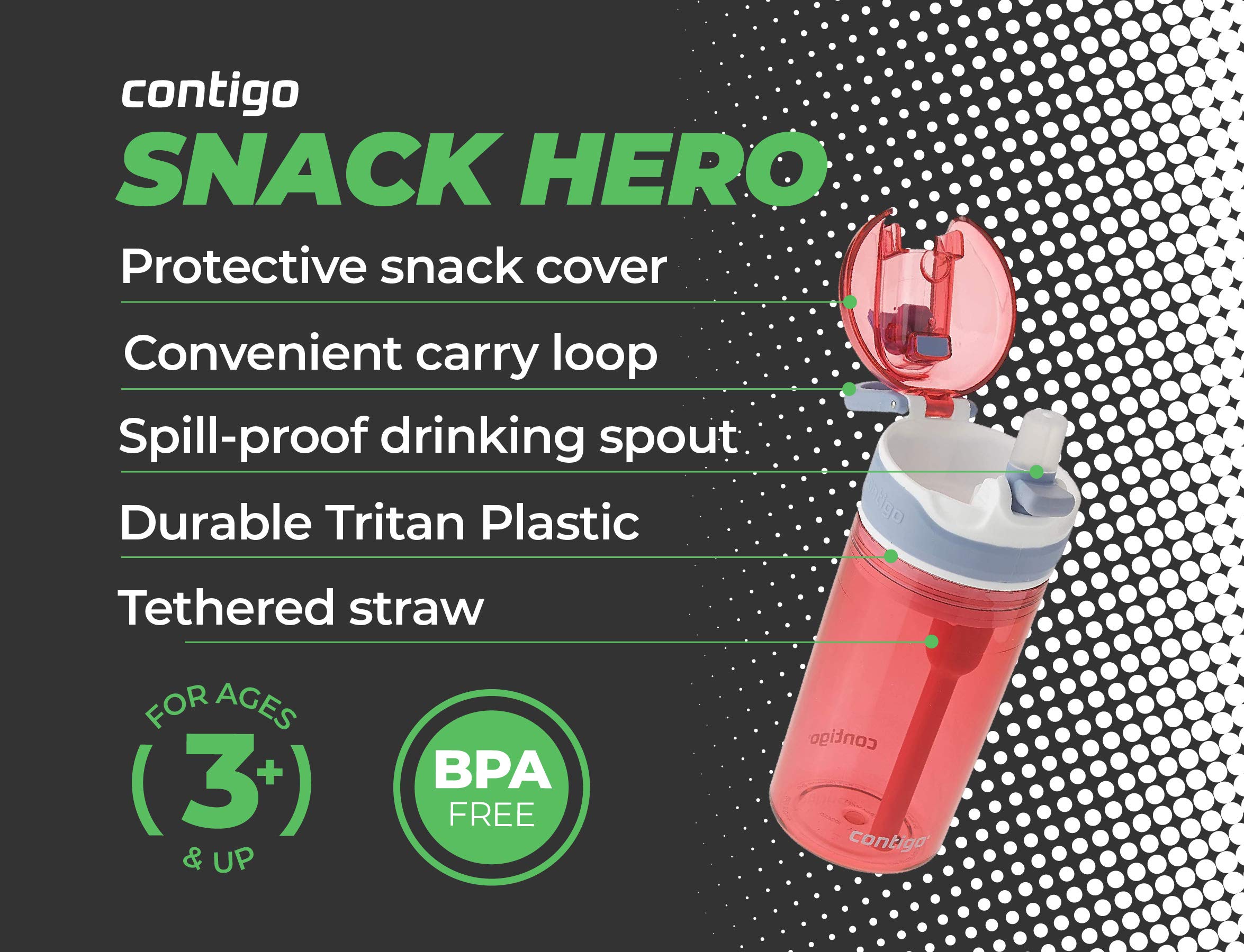 Contigo Snack Hero Juego de botellas 2 en 1 - Compartimento para refrigerios de 4 oz y botella de agua a prueba de derrames de 13 oz - Rojo y azul
