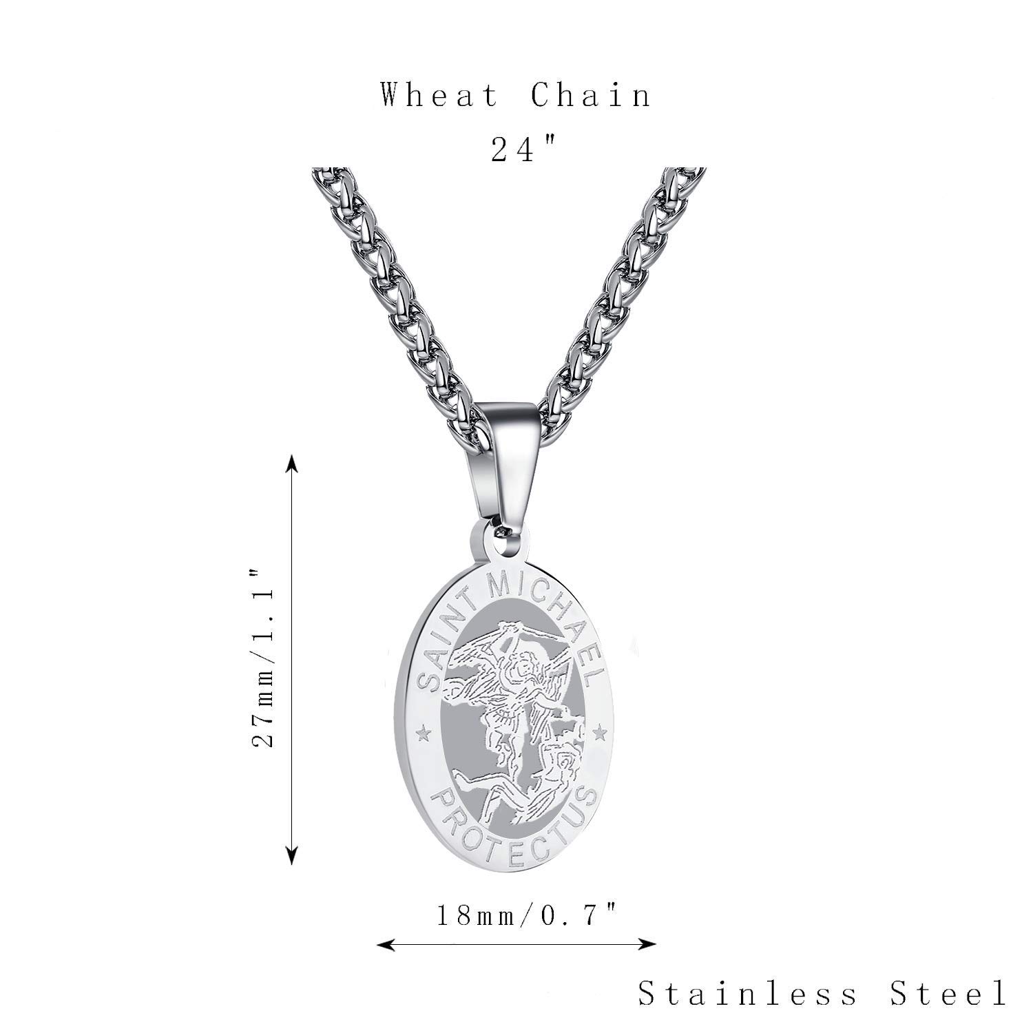 -St Michael Medal: 1.1*0.7 inch (27*18mm), resistant wheat chain: 24 inches.