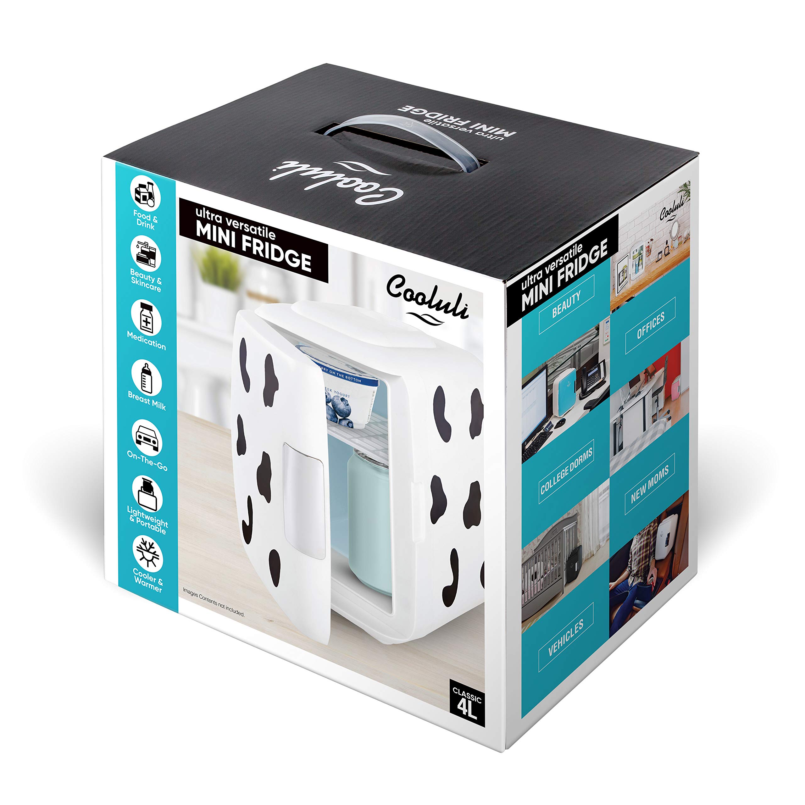 Cooluli Skincare Mini refrigerador para dormitorio - Coche, escritorio de oficina y dormitorio - Enfriador y calentador eléctrico portátil de 4 l/6 latas para alimentos, bebidas, belleza y maquillaje, 12 V CA/CC y USB exclusivo, estampado de vaca Cooluli Skincare Mini refrigerador para dormitorio - Coche, escritorio de oficina y dormitorio - Enfriador y calentador eléctrico portátil de 4 l/6 latas para alimentos, bebidas, belleza y maquillaje, 12 V CA/CC y USB exclusivo, estampado de vaca