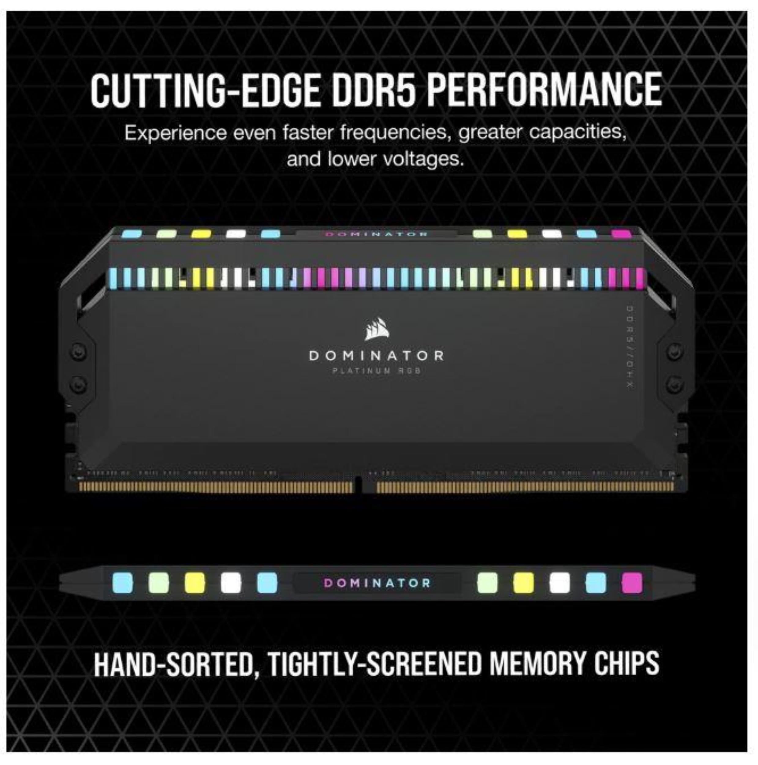 Push the limits of performance with CORSAIR DOMINATOR PLATINUM RGB DDR5 Memory optimized for Intel®. DDR5 delivers higher frequencies and greater capacities than previous generation memory, helping your system power through complex tasks faster than ever before. With world-renowned design lit by 12 ultra-bright CAPELLIX RGB LEDs, DOMINATOR PLATINUM RGB DDR5 complements the styling and power of the most high-end systems. Hand-sorted, tightly screened memory chips and a custom PCB cooled by patented DHX cooling technology ensure consistently high performance. CORSAIR iCUE software enables RGB lighting customization and synchronization, real-time performance information, and onboard voltage regulation for easier, more controlled overclocking. Supporting Intel XMP 3.0 and backed by a limited lifetime warranty, DOMINATOR PLATINUM RGB DDR5 is in a class of its own.