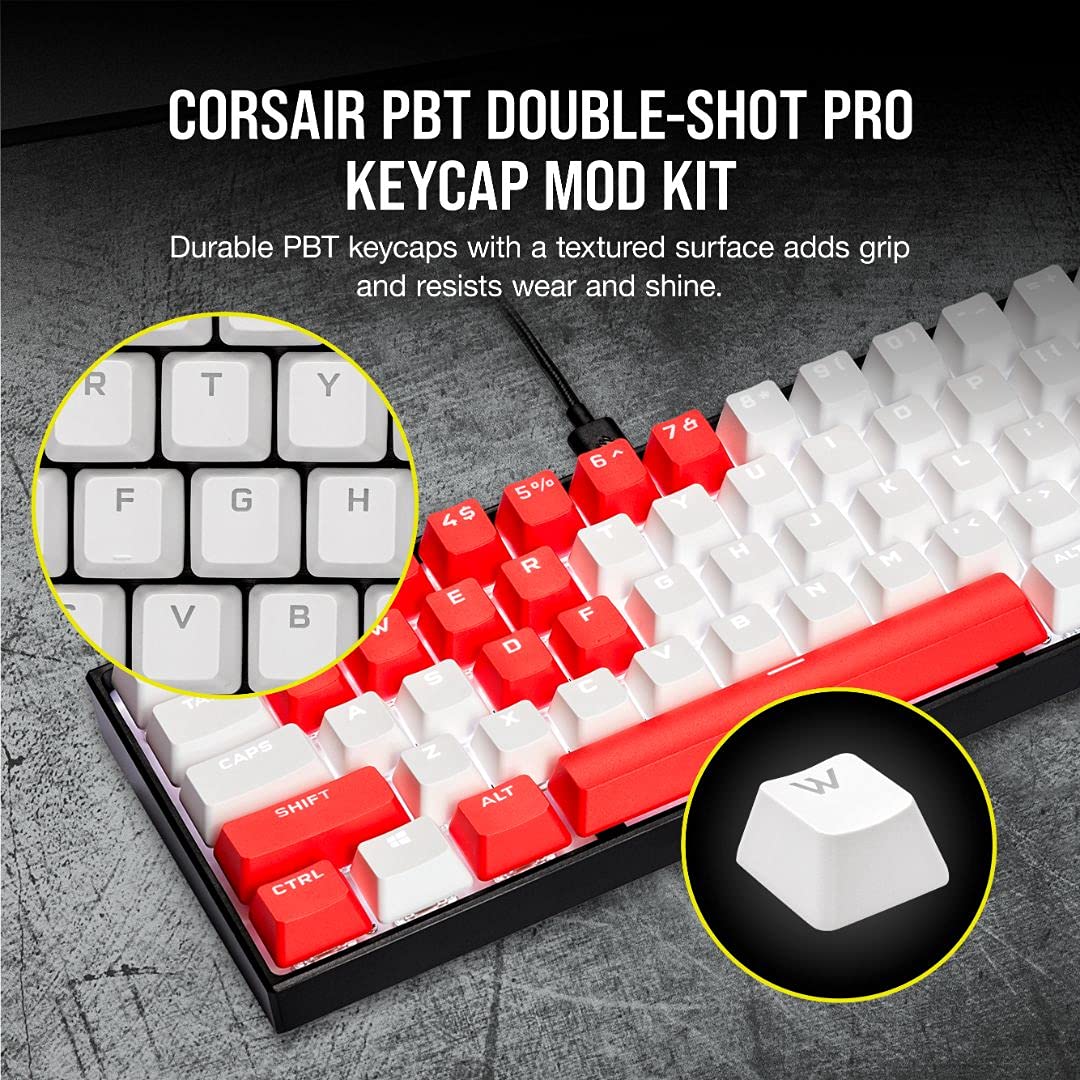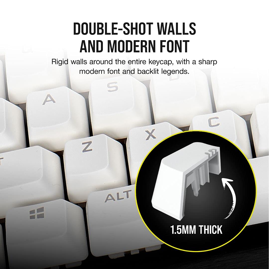 Corsair PBT Double-shot Pro KeyCap Mod Kit-KeyCaps PBT de doble disparo-Arctic White-Fila inferior estándar-Superficie texturizada-paredes de 1,5 mm de espesor-amortiguadores de la junta tórica (CH-9911040-NA)