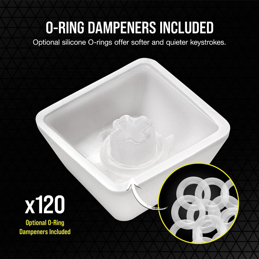 -Optional included silicone O-ring dampeners soften the sound and feel of keystrokes, offering a quieter and more comfortable experience when gaming or typing.
