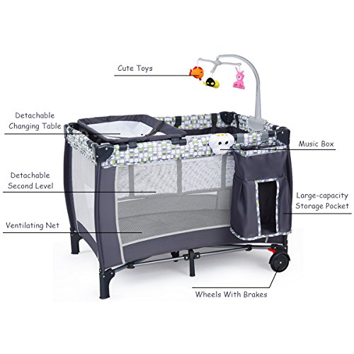 - Reversible Playard & Bassinet - Designed to transit from newborn to infant to toddler, Costzon baby playard consists of multifunctional accessories. Water-resistant changing table holds a baby stably and flips over when not in use. Removable newborn bassinet for baby to take a nap. Spacious playard is equipped with a zipper game entrance for baby to crib in/out.