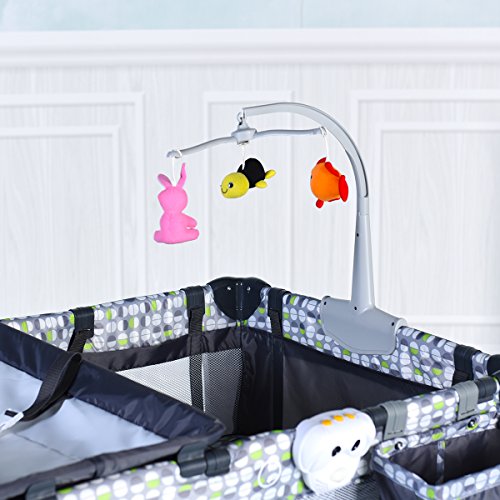 Costzon Baby Playard, paquete convertible 3 en 1 y juego con moisés, parque plegable con cambiador, caja de música, juguetes giratorios, ruedas y freno, canasta de gran capacidad, bolsa de transporte Oxford (gris)