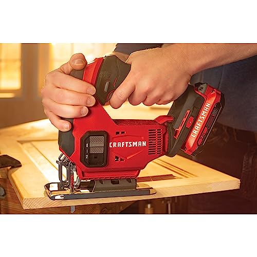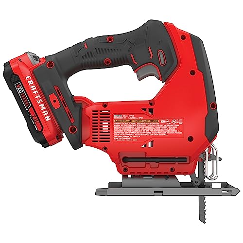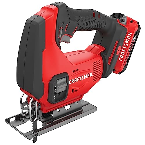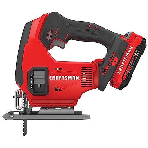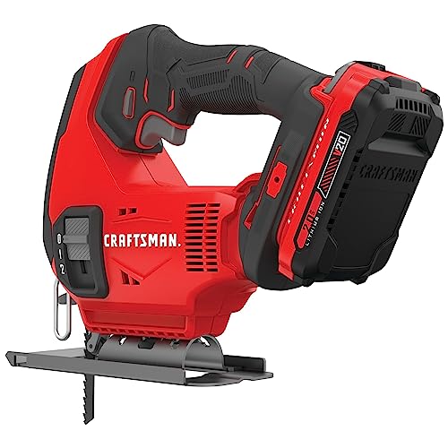 CRAFTSMAN V20 Kit de sierra caladora inalámbrica, 3 configuraciones orbitales, hasta 2500 SPM, batería y cargador incluidos (CMCS600D1)