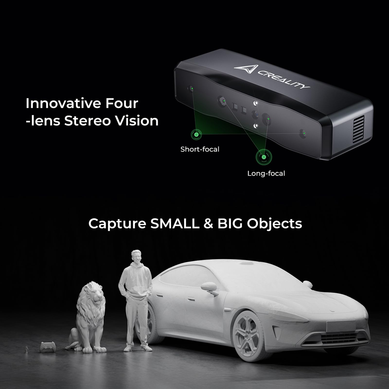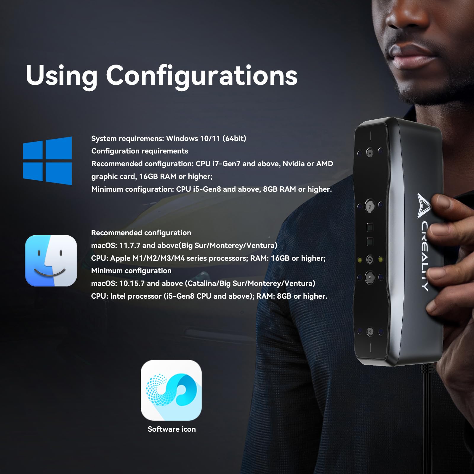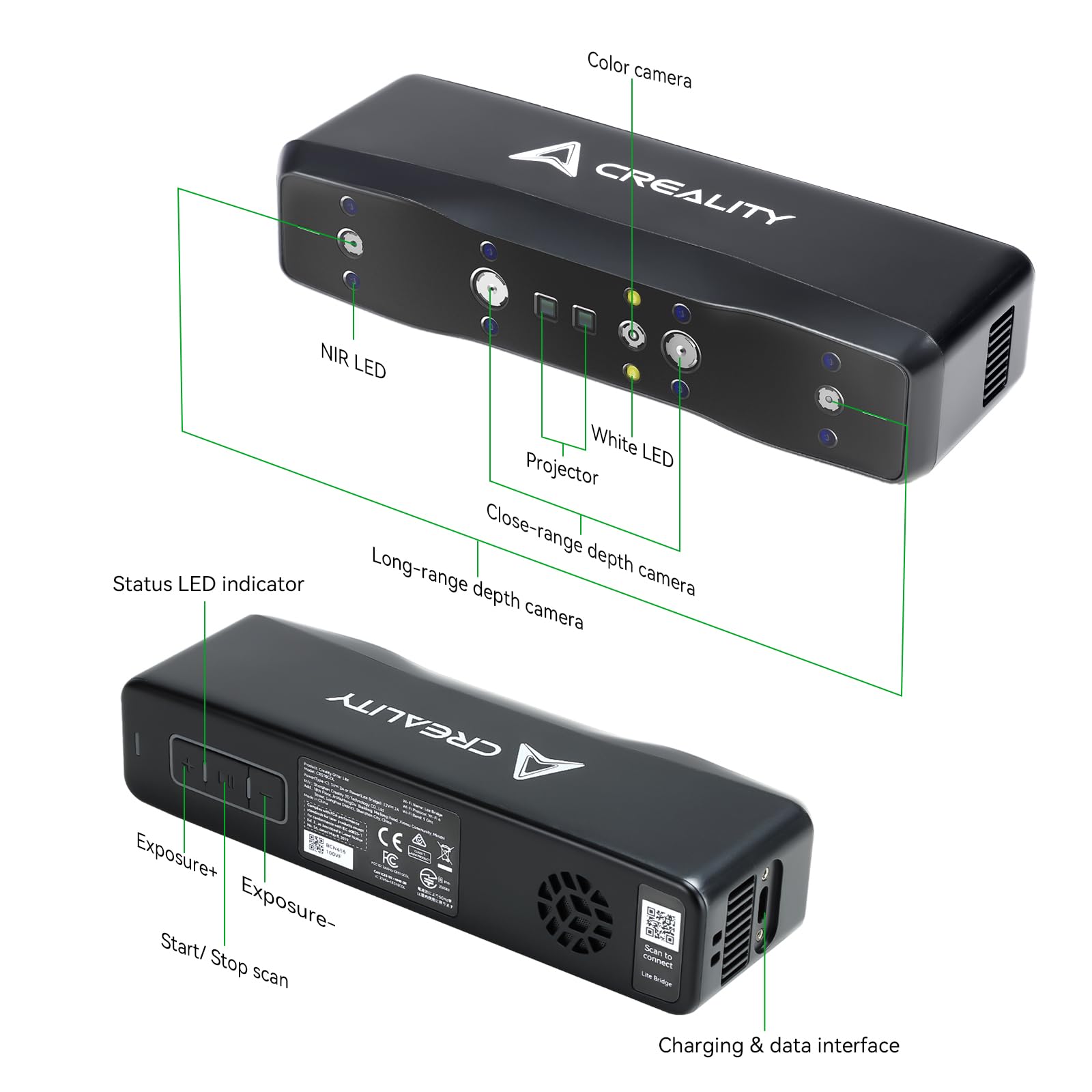 -【User-Friendly Operation with Smart Feedback】Intuitive button controls and multi-color LED indicators guide optimal scanning distance and status. Compatible with Windows and macOS via Creality Scan software. Includes QR tutorial access for quick learning.