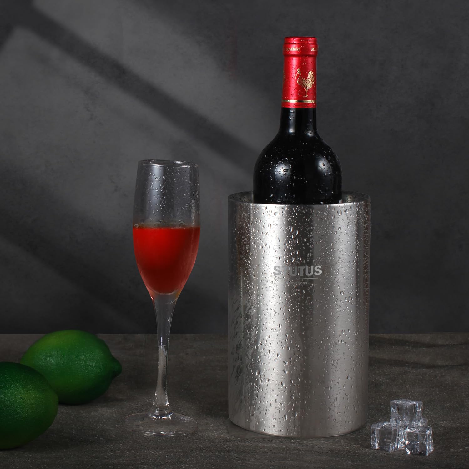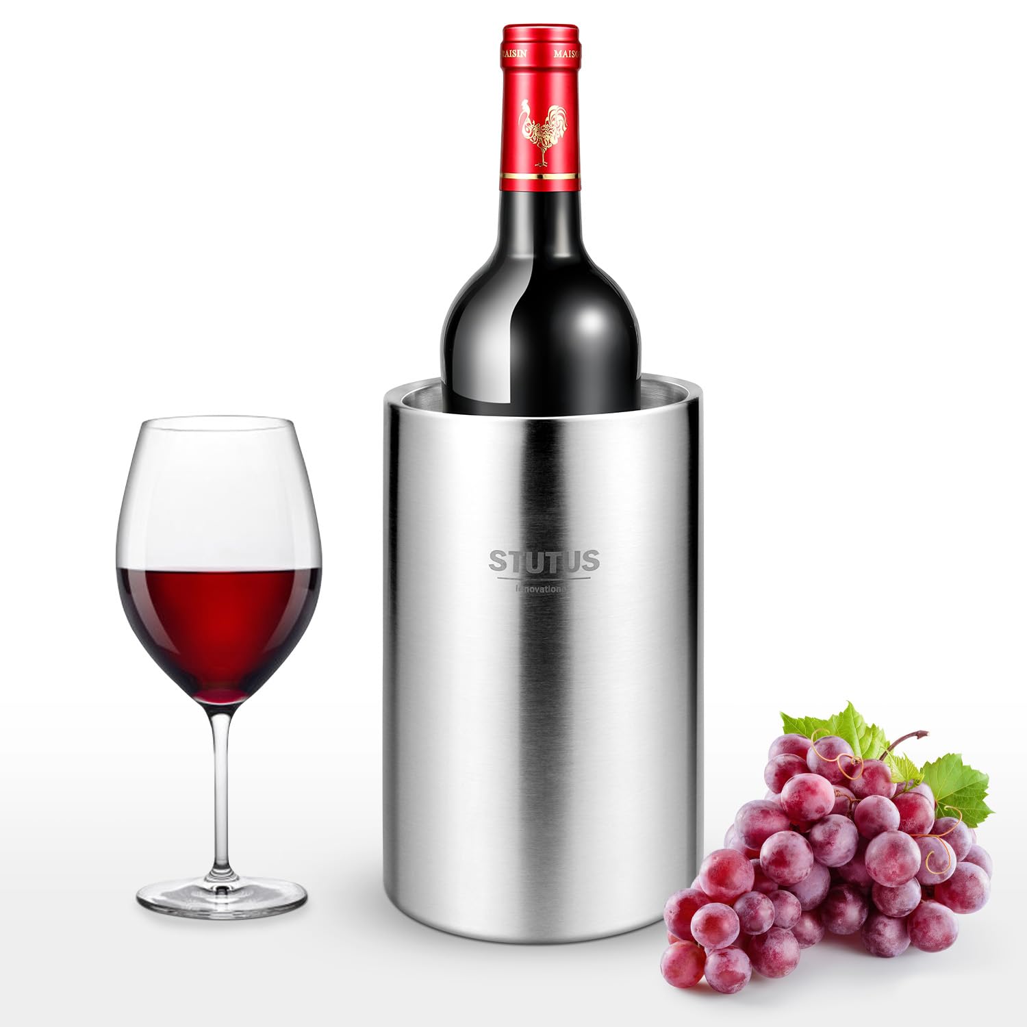 Cubo enfriador de vino, cubo enfriador de botellas de vino blanco de doble pared de acero inoxidable STUTUS, cubo de hielo aislado para cerveza y champán