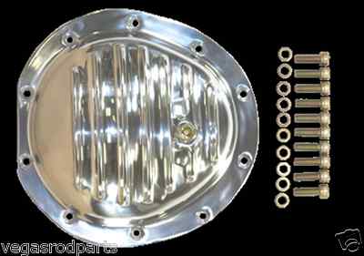 Chevy/GMC polished aluminum front differential cover with 10 bolt pattern. Fits 10 bolt Chevy/GMC truck front ends with 8.5" ring gear. Includes drain plug.