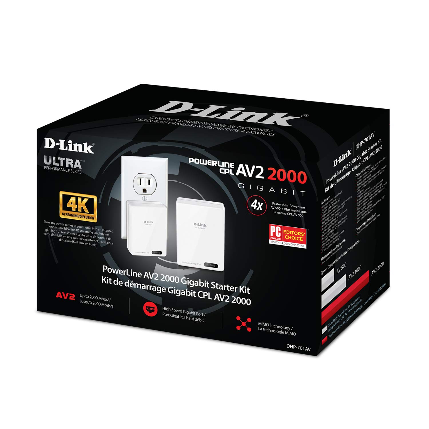 Extend your home network with speeds of up to 2000Mbps using the D-Link DHP-701AV PowerLine AV2 2000 Gigabit Extender Kit. The kit includes two adapters so you can easily extend a network connection to a hard to reach location using your existing router. Using the latest in AV2 MIMO technology and Gigabit Ethernet connectivity, the DHP-701AV powerline extender creates a more reliable connection for use in hard-to-reach areas where Wi-Fi is too slow or not available. The DHP-701AV solution is ideal to stream HD media, connect game consoles or connect your smart TV for reliable connect to bandwidth intensive devices. Extend your Powerline network by adding up to 16 adapters in total. Backward compatible with PowerLine AV, AV+.3.