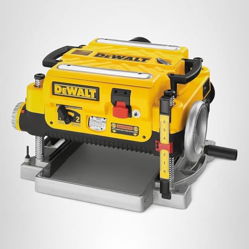 Amazon.com The DEWALT DW735 features a three-knife cutterhead and a powerful 15 amp motor that delivers 10,000 rpm. It offers quick, accurate depth adjustment and the convenience of knives that are both reversible and disposable. This fully featured portable planer makes it easy to create clean custom stock. Powerful 15 Amp Motor for Clean Cuts Benchtop planers are a long-term investment that allow you to save money over time by buying rough stock and dimensioning it yourself. They also make creating custom materials easier, which, in turn, makes getting great results easier. The DW735 13-Inch Planer's powerful 15 amp motor can handle deep cuts in tough hardwoods. Its three-knife cutterhead and two-speed gearbox deliver 96 or 179 cuts per inch (cpi). Use 96 cpi when dimensioning material and 179 cpi for a finer finish. Reversible, Disposable Knives for Convenience The DEWALT DW734 uses razor sharp knives that are reversible and disposable. These knives last 30 percent longer than traditional disposable knives, helping you avoid costly and time-consuming resharpening. For fast, easy, one-tool knife changes, a set of pins machined on the cutter-head goes through holes machined on the knife. This helps you quickly locate the fresh knife and refasten the knife clamp. Large Capacity and Easy, Accurate Depth Adjustment This planer's extra-long infeed and outfeed tables provide 33-1/2 inches of material support. A turret depth stop saves you time when setting the machine at commonly used depths. In addition, the planer's material-removal gauge and extra-large thickness scale help ensure every pass is accurate. A four-column carriage lock drastically reduces the movement that causes material damage, or snipe, when planning near the end of a board. This sturdy planer weighs 80 pounds. It offers a maximum cut depth of 1/8 inch, a depth capacity of 6 inches, and a width capacity of 12-1/2 inches. Fan-Assisted Chip Ejection for Dust Management The DW735 features a Fan-Assisted Chip Ejection System with a motorized fan that breaks down debris as it leaves the cutterhead and blows it into one of the two dust shrouds (included). One shroud disperses the chips down onto the shop floor while the other provides a connection for a vacuum hose or dust-collector hose. This sturdy planer weighs 92 pounds. It offers a maximum cut depth of 1/8 inch, a depth capacity of 6 inches, and a width capacity of 13 inches. The DW735 13-Inch Thickness Two-Speed Planer with Three-Knife Cutterhead also comes with a DEWALT warranty package that includes a three-year limited warranty, a one-year free service contract, and a 90-day money-back guarantee. What's in the Box DW735 DEWALT 13-Inch Thickness Two-Speed Planer with Three-Knife Cutterhead, dust-hose adapter, and dust-ejection chute. Product Description The DW735 13 in. Three Knife, Two Speed Thickness Planer is powered by a 15 Amp motor to easily manage large cuts in wider materials. Three-knife cutter head with 10,000 rpm and feed speed options for 96 or 179 CPI provide optimal performance. From the Manufacturer The DEWALT DW735X 13-Inch, Three Knife, Two Speed Thickness Planer has a powerful 15 AMP, 20,000 RPM motor (10,000 RPM cutterhead speed) that handles larger cuts in wider materials with ease. The three knife cutter-head delivers 30% longer knife life and makes knife change faster and easier. The two speed gear box allows users to change feed speed to optimizing cuts per inch at 96 or 179 CPI. It has a fan-assisted chip ejection that vacuums chips off of the cutter-head and exhausts them out of the machine. With a 19-3/4" cast aluminum base it is 2X more rigid than a standard 10" base and folding tables. The automatic carriage lock reduces the movement that causes snipe without the need for manual engagement by the user. It also has a material removal gauge and extra-large thickness scale that deliver accurate cuts with every pass. The extra-large turret depth stop allows users to return to most frequently used thicknesses with ease. Includes infeed and outfeed tables and an extra set of knives.