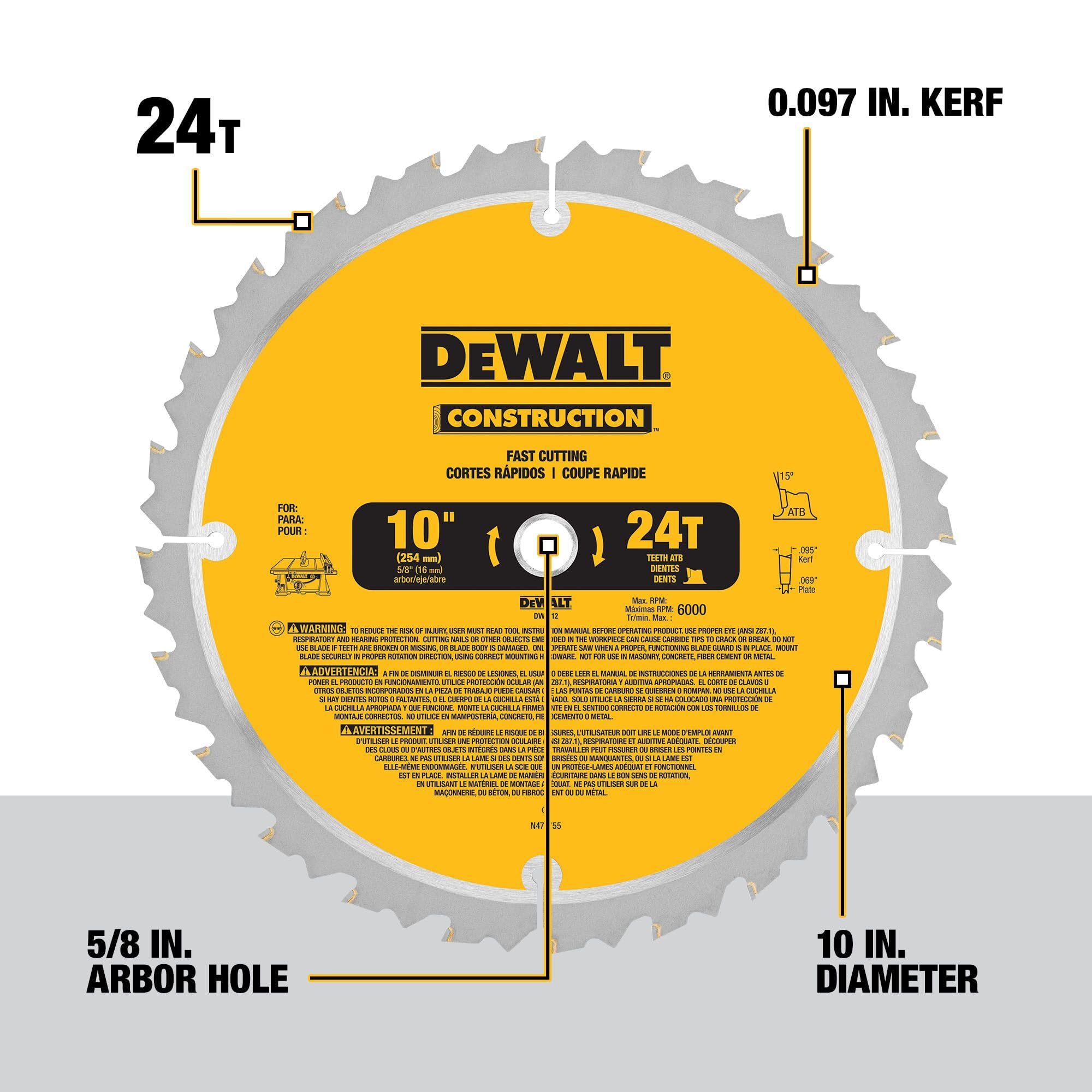 Sierra de mesa DEWALT de 10 pulgadas con soporte plegable para sierra de mesa rodante, 15 amperios, 4800 RPM, capacidad de corte de 32-1/2 pulgadas (DWE7491RS)