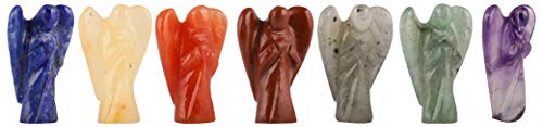DHYANARSH 7 Chakra Angels -Reiki Healing agate Crystals Angels Holistic Balancing Polished Agate Stones Set of 7 - Reiki - Metaphysical - Crafting 1) Red Jasper :- Red Jasper is known as the “supreme nurturer”. It sustains and supports during times of stress. Gives courage to handle problems assertively. Encourages honesty with yourself and aids quick thinking. 2) Golden/Yellow Aventurine :- Yellow Aventurine Is good for opening and balancing the Solar Plexus Chakra. Those who are oversensitive or indecisive - issues relating to an unbalanced Sacral Chakra, can also benefit from Yellow Aventurine's reassuring and balancing energies. Working with Yellow Aventurine can help focus intentions for manifesting a sense of ease in being yourself. 3) Green Aventurine :- It comforts, harmonizes, and protects the heart, and can help attract love later in life. It is good for working with the Heart Chakra and with the Water Elements. It is known as the good luck stone. 4) Amethyst :- Is a powerful and protective crystal. Is a natural stress reliever and encourages and supports inner strength It connects the physical plane with the higher realms. It provides a peaceful energy for meditations and helps with develope intuition and psychic abilities. Grey Aventurine - Increases success and luck in gambling, career and love Gently increases the energy of the sacral chakra Helps with decision making and can boost creativity. Helps defuse negative situations Lapis Lazuli :-Is good for balancing the Throat Chakra. It encourages clear expression when sharing information with others Red Aventurine :-Helps those with addictions to take responsibility for their problems. When used in meditation it will assist you in overcoming addictions. It clears old, stagnant energies, helping you to open up to inner growth and spiritual work.
