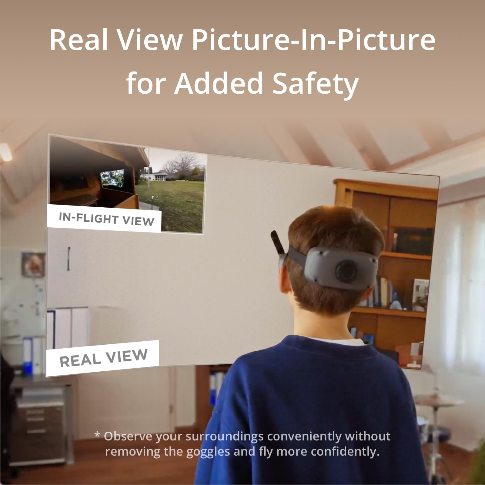 -Real View PiP, Safety in Sight - Without removing your goggles, you can now conveniently observe your surroundings to get enhanced flight safety.