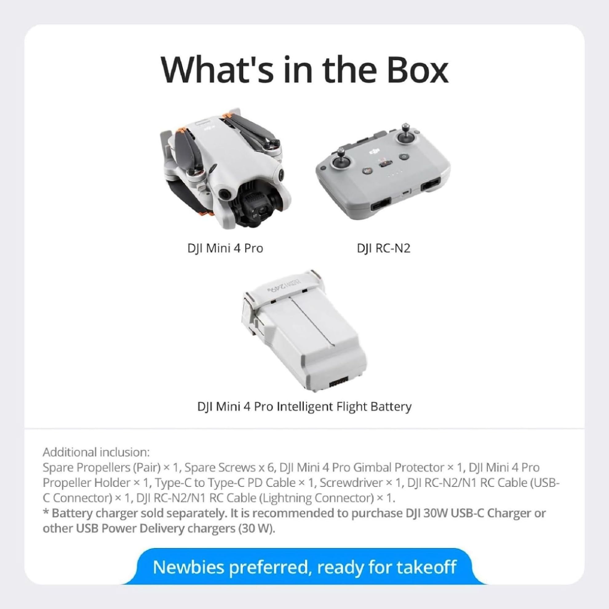 DJI Mini 4 Pro (DJI RC-N2), Drones con cámara para adultos 4K, menos de 0,549 lbs/249 g, tiempo de vuelo de 34 minutos, distancia máxima de transmisión de vídeo de 20 km, detección de visión omnidireccional, mini drone para principiantes