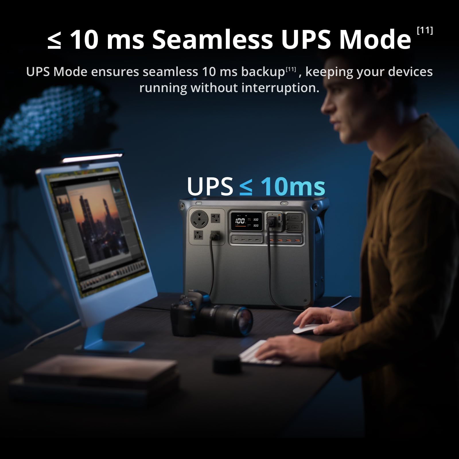 -Reliable Power Station in a Flash - DJI Power 2000 features seamless UPS with a 10 ms [11] switch time—twice as fast as Power 1000—keeping your devices running smoothly during unexpected outages.