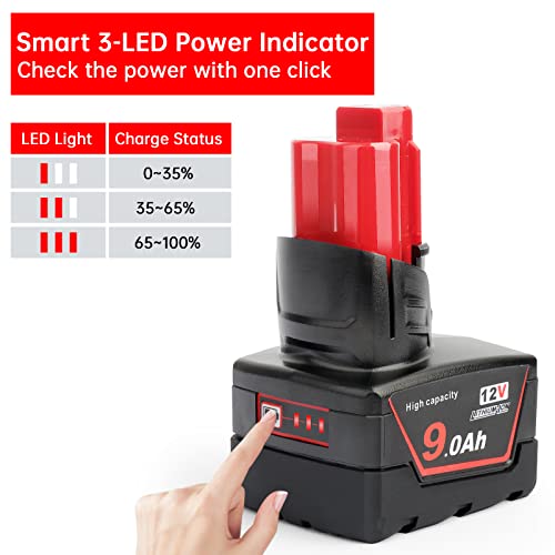 DKSIDKN Batería de repuesto de iones de litio de 12 V, 9,0 Ah, compatible con Milwaukee 48-11-0490 48-11-2402 48-11-2411 48-11-2430 48-11-2450 48-59-2440 Herramientas inalámbricas de 12 V