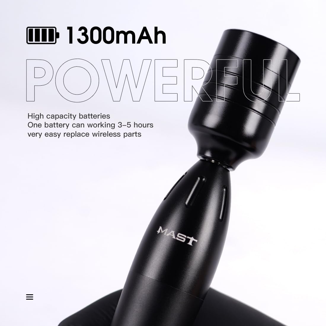 -B2 Super Tattoo Battery: Powered by Mastlabs cognitive technology and a super-sense chip, the B2 battery automatically recognizes different motors; lightweight and compact, it balances perfectly with all tattoo machines for optimized performance