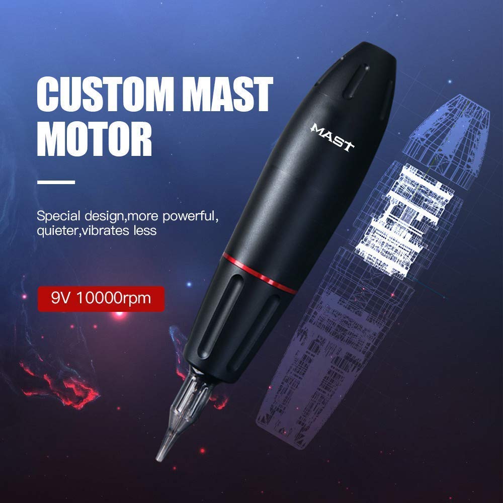 Dragonhawk wireless tattoo pen machine kit with B1 lightweight battery power supply This Mast tattoo machine features a powerful custom motor and an advanced gear system that guarantees reliable, quiet operation without any vibration. The Mast machine has a working voltage of 6V–9V, ergonomic, lightweight pen-style machine. Pebble modeling Dragonhawk B1 wireless tattoo battery is super lightweight tattoo battery only 40g, work last 6-12 hours. Stable voltage and ampere for all rca jack rotary tattoo machines. Small size and super lightweight, better for tattoo pen machines.
