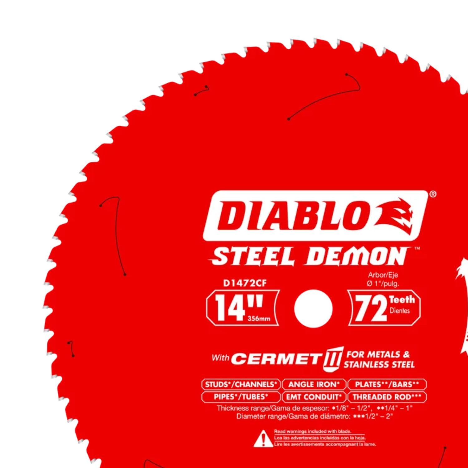 Hoja de sierra Diablo Steel Demon Cermet II para metal mediano - Acción de corte de triple viruta - 14" x 72 dientes, 1800 RPM máx. - D1472CF