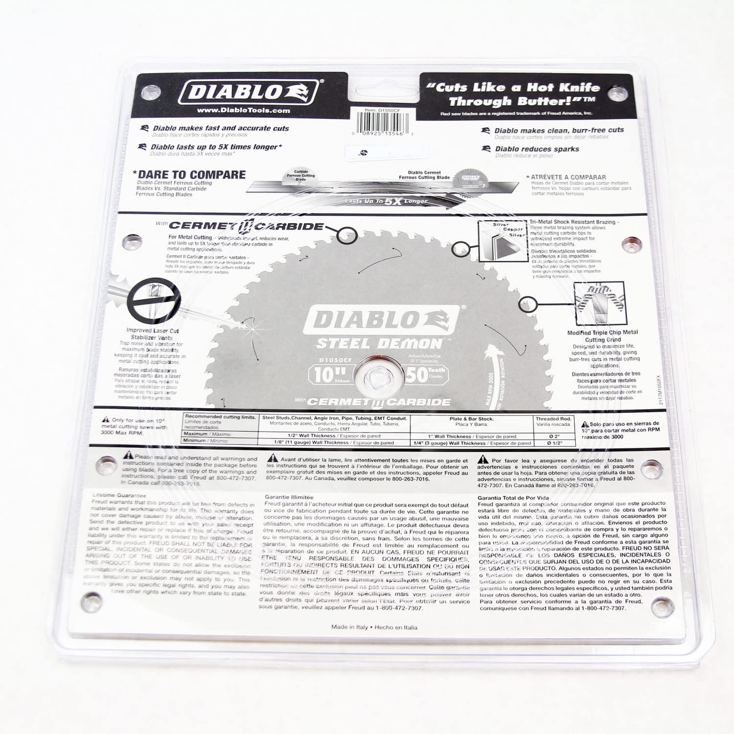 -Superior Teeth - The specially formulated Cermet II teeth provide high heat tolerance and increased hardness for superior wear and life, enabling fast and efficient cutting of metal and stainless steel.