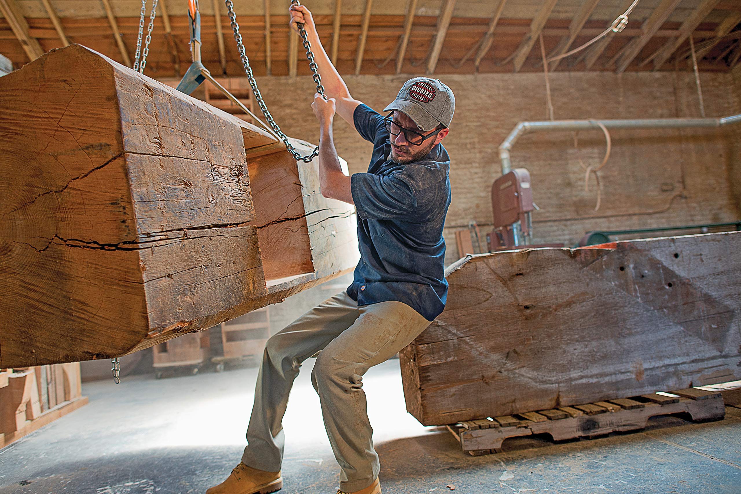 -Our highest rise; sits at the natural waist. Traditional workwear waistband. Sturdy twill fabric; durable and long-lasting. Relaxed fit with slightly tapered legs leaves enough room in the seat and thigh