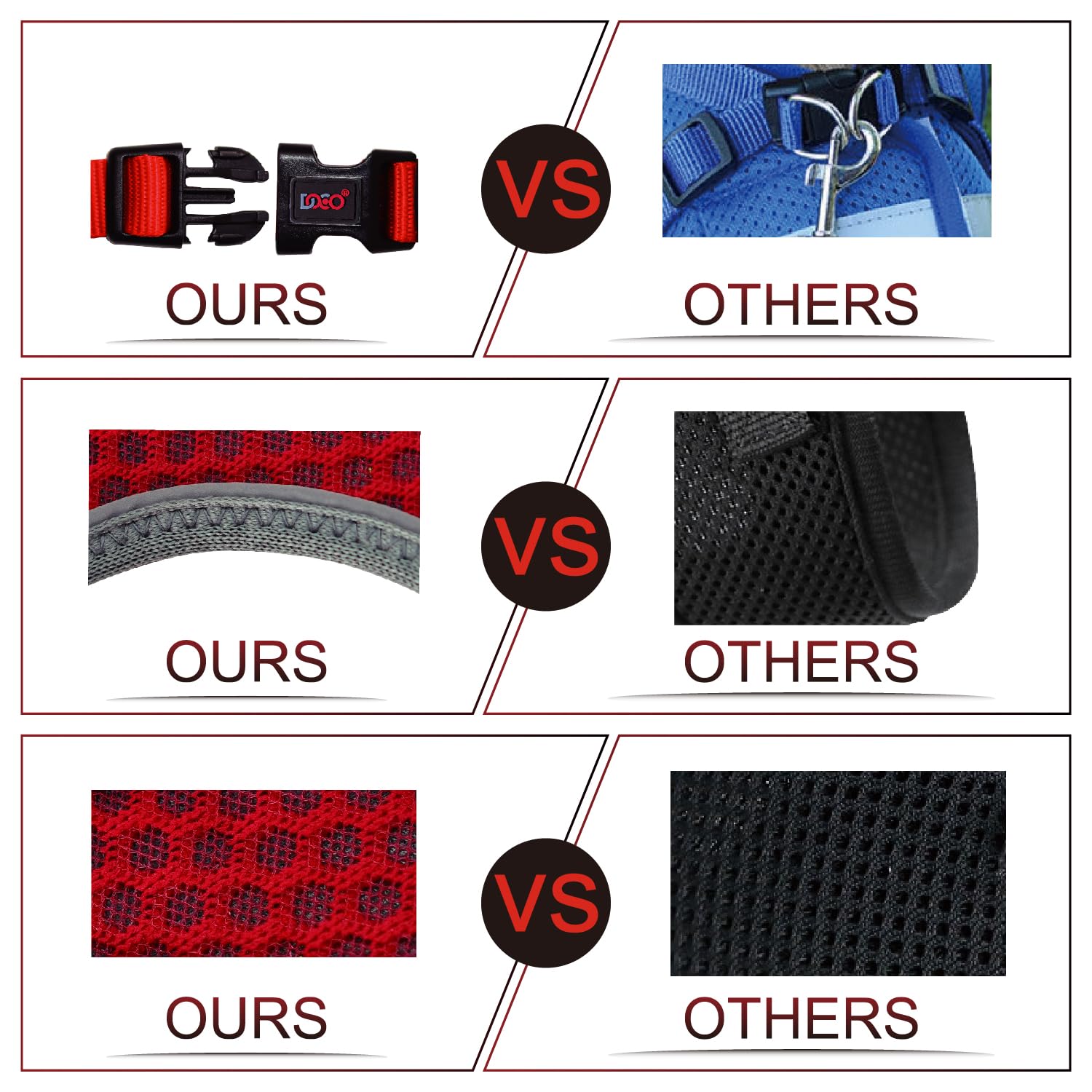 -No Choke: The no choke feature of this dog harness ensures a gentle fit around your pet’s chest. The breathable air mesh fabric reduces pressure on sensitive areas, keeping your dog comfortable and free from friction, even during extended use.