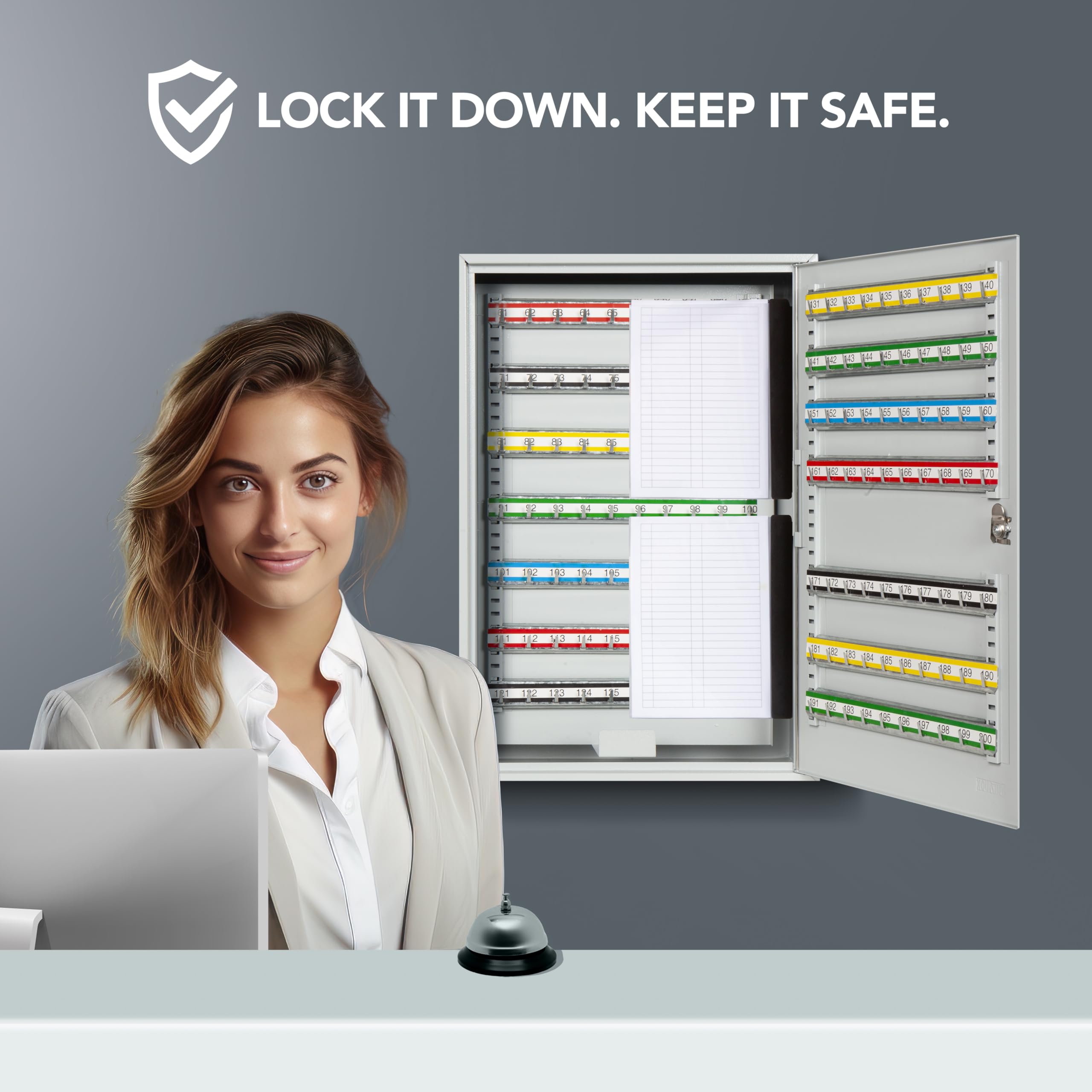 -SECURE & ORGANIZED KEY STORAGE - Keep your keys safe, accessible, and neatly arranged with the Durabox High-Capacity Key Box. Designed for offices, property managers, businesses, and homeowners, this lockable steel storage box holds up to 200 keys, providing maximum storage in a compact design while ensuring security and preventing unauthorized access.