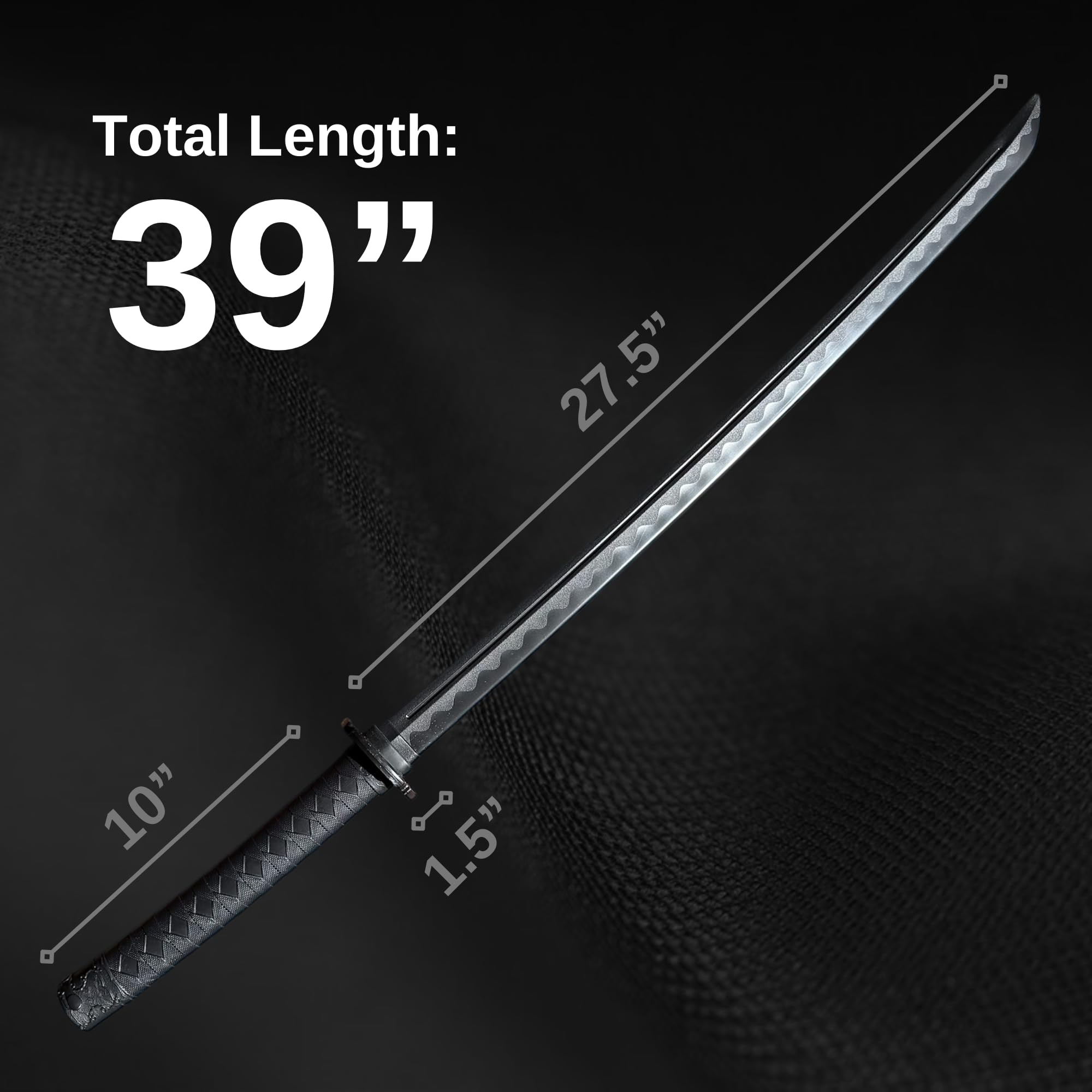 -Training Sword - Overall Length: 39 in (99 cm) Tsuka (Handle): 10 in (25.5 cm) Blade Length: 27.5 in (70 cm) Weight: 1.05 lbs (500 g) Color: Black Tsuba: Black Tsuba included