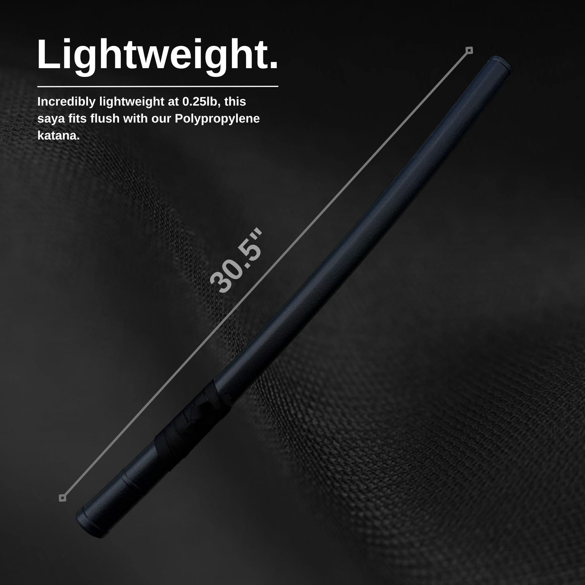 -Black Scabbard - Approximate Length: 30.5 in (78 cm) Approximate circumference: 4.25 in (11 cm) Approximate KOIGUCHI circumference: 3.5 in (9 cm) Approximate weight: 90 g Color: Black Material: Light weight plastic