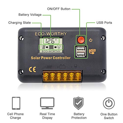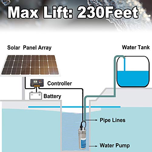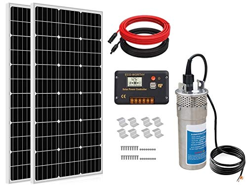 ECO-WORTHY Kit de bomba de pozo solar para riego de 24 voltios - 1 bomba de agua solar sumergible + 2 paneles solares mono de 100 W + controlador de carga de pantalla LCD de 20 A + cable solar de 16,4 pies + soportes de panel solar