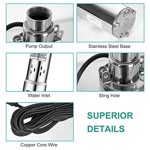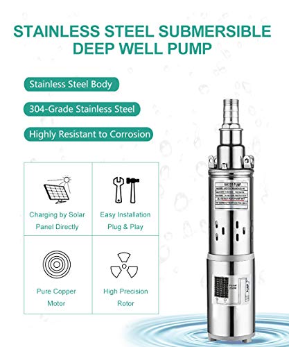 ECO-WORTHY 400W 24V Acero inoxidable 316 Kit de bomba de pozo de agua solar sumergible, 3 '' 250W Bomba de agua solar + Panel solar mono de 400W para suministro de agua de riego, circulación, fuentes de jardín