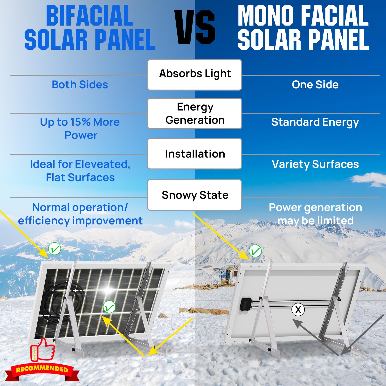 -[Wide Range of Applications]Bifacial solar panels are used in a wide range of applications for sunrooms, RVs, yachts, farms, or off-grid systems for homes