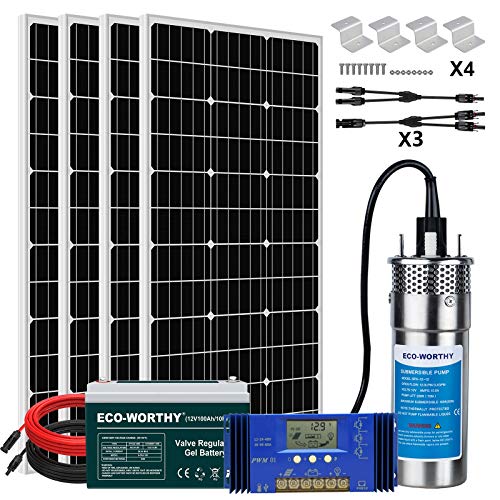 Package Including: 4pc 100W Monocrystalline Solar Panel 1pc 12V DC Solar Water Pump 1pc 12V 100AH.....