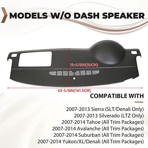 ECOTRIC - Tapa para salpicadero compatible con Chevy Silverado Avalanche Suburban Tahoe/GMC Sierra Yukon 2007-2014, panel de salpicadero moldeado sin altavoz de salpicadero, color negro