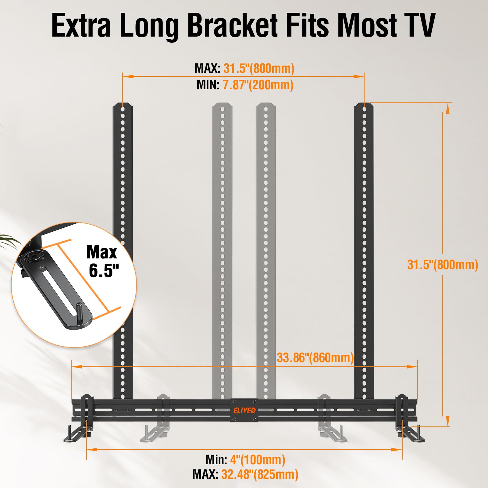 ELIVED Soporte para barra de sonido debajo de TV, soporte extra largo de 31,5", soporte para barra d